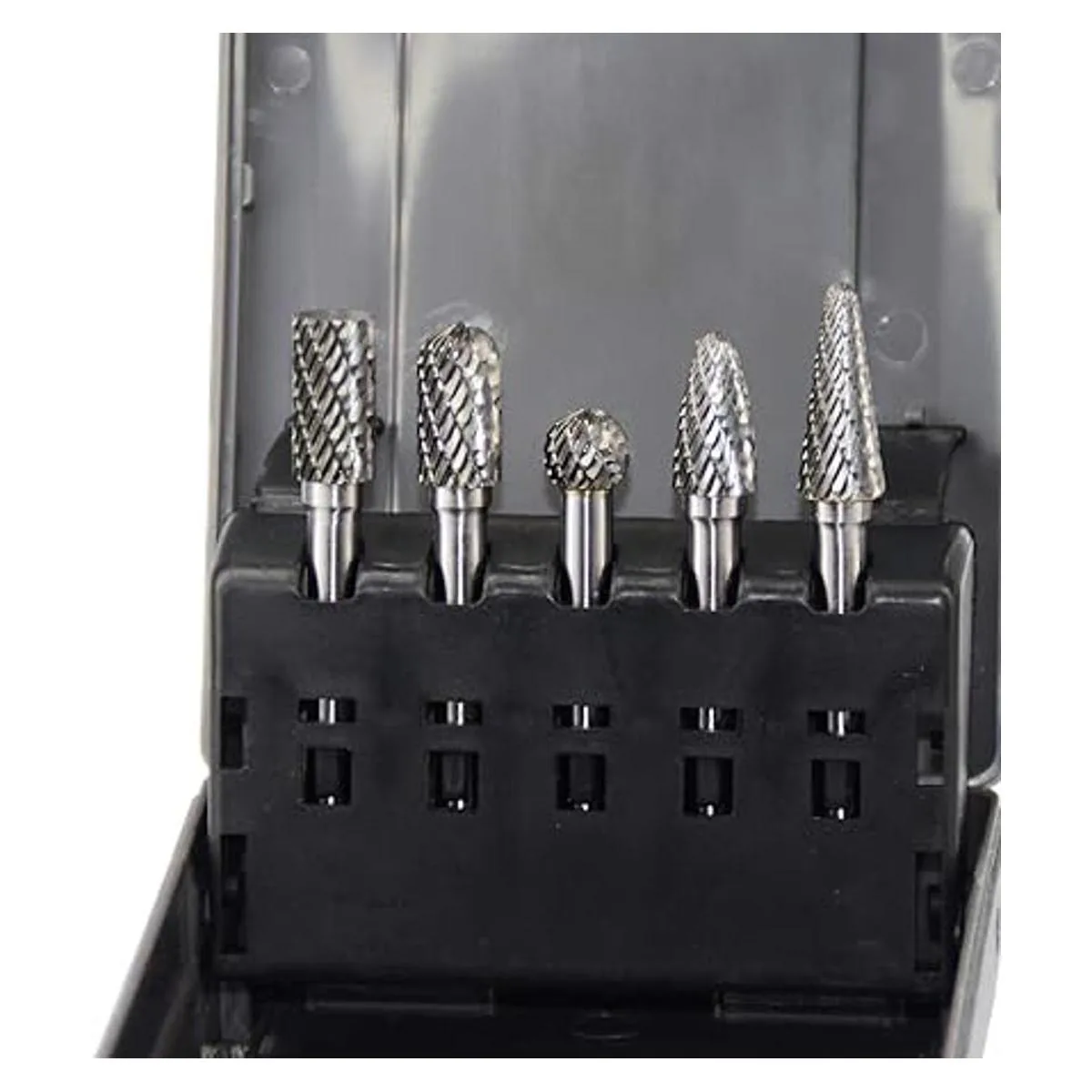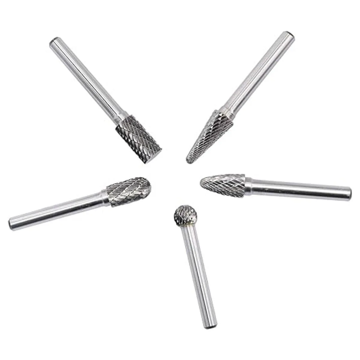 Juego de 5 fresas de carburo con vástago de 14 pulgadas, herramientas eléctricas sólidas, de carburo de tungsteno, lima rotatoria para troqueladora, talla de madera, grabado de metal, pulido, perforación, molienda y corte