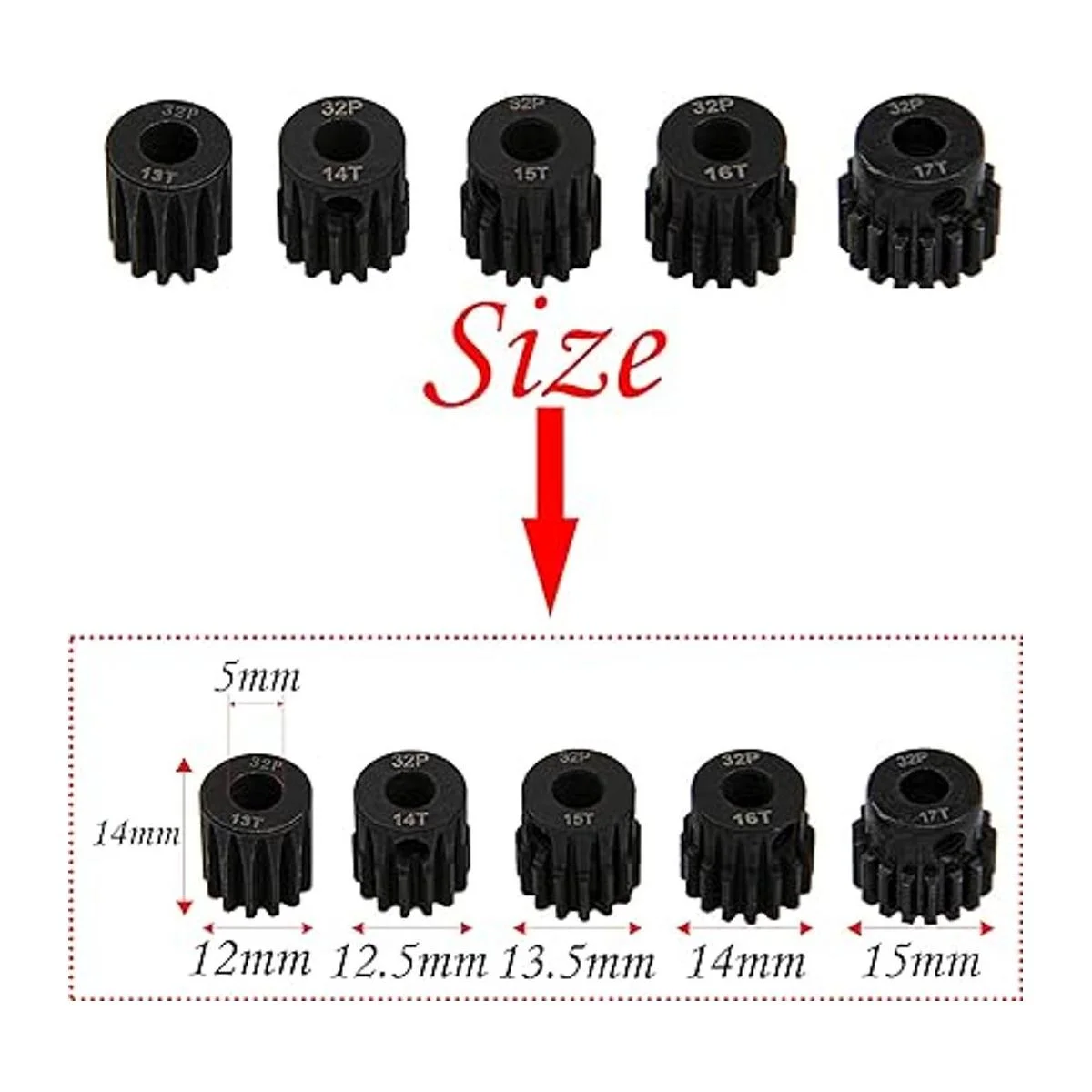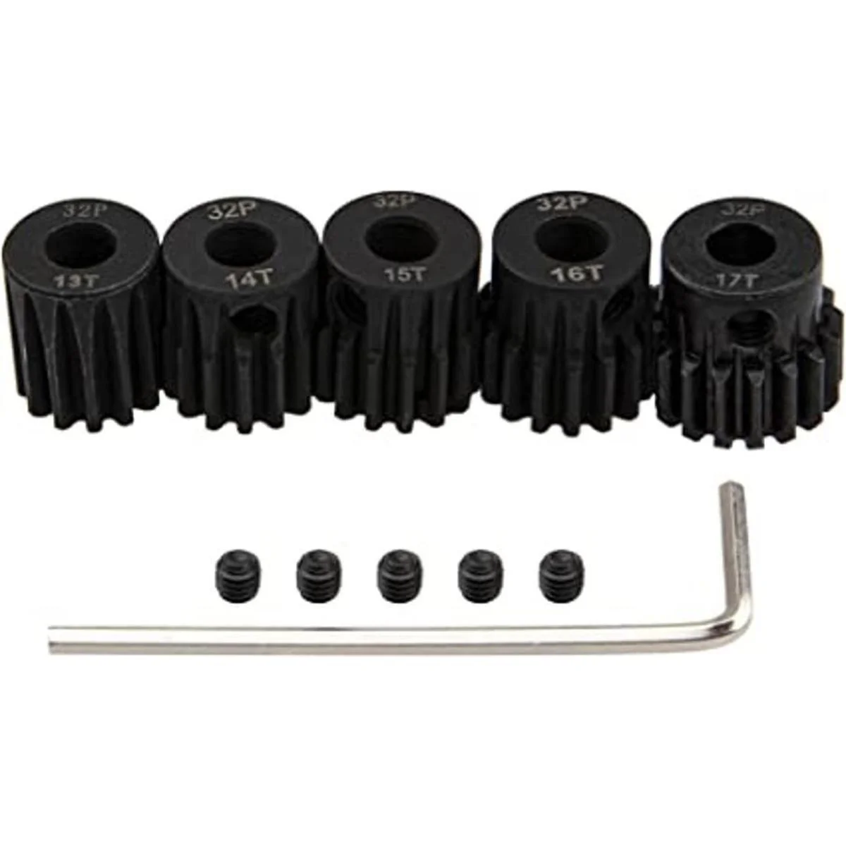 Engranaje de piñón universal 32P, total 5 piezas, 13T 14T 15T 16T 17T con 0.197 in de diámetro interior. Vienen con tornillos prisioneros. Fácil de instalar y actualizar.