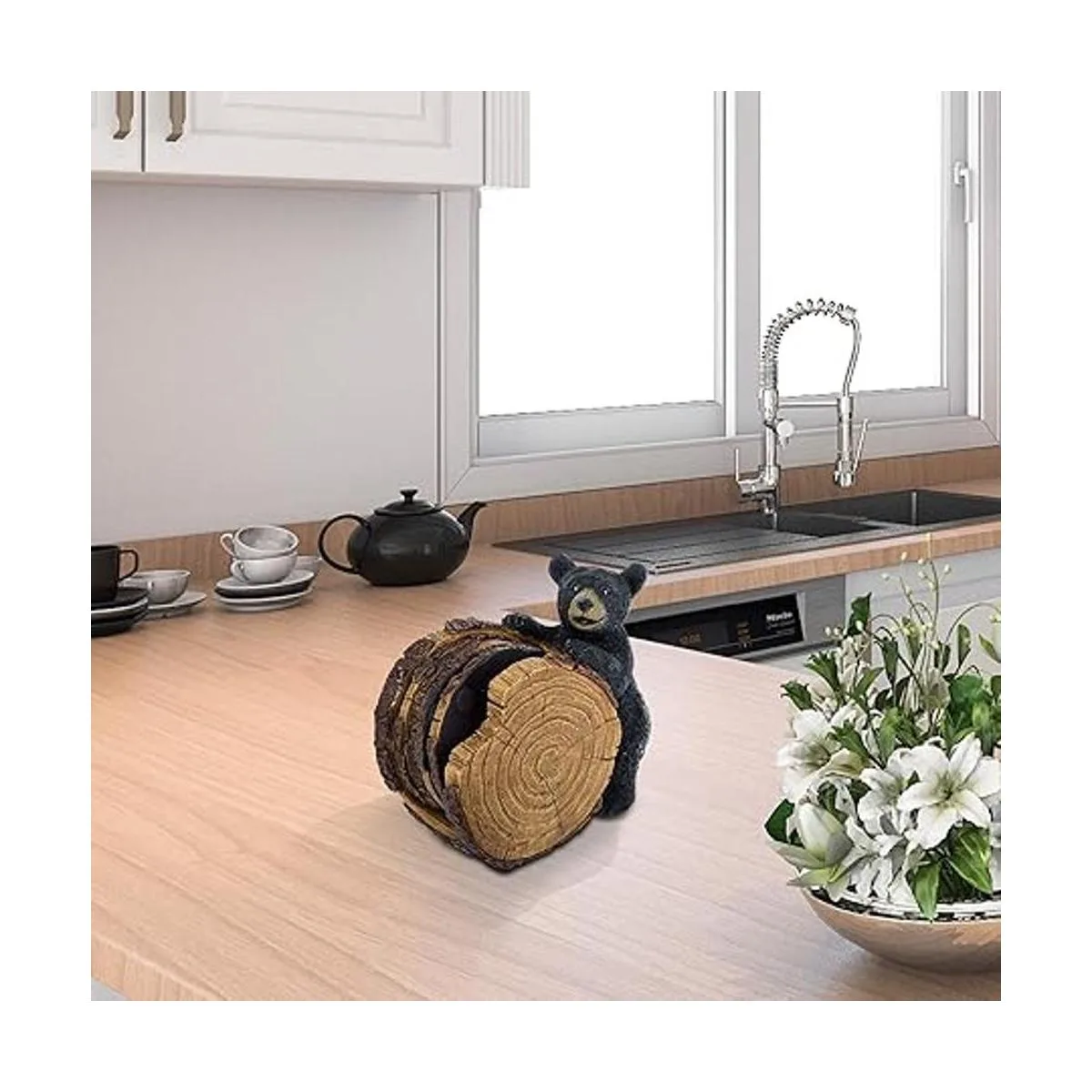 Juego de 5 posavasos de tocón de oso negro, posavasos de decoración de cabina de oso para bebidas, regalos de oso para mujeres, posavasos y soporte, regalos de cumpleaños, decoración del hogar de cocina para comedor