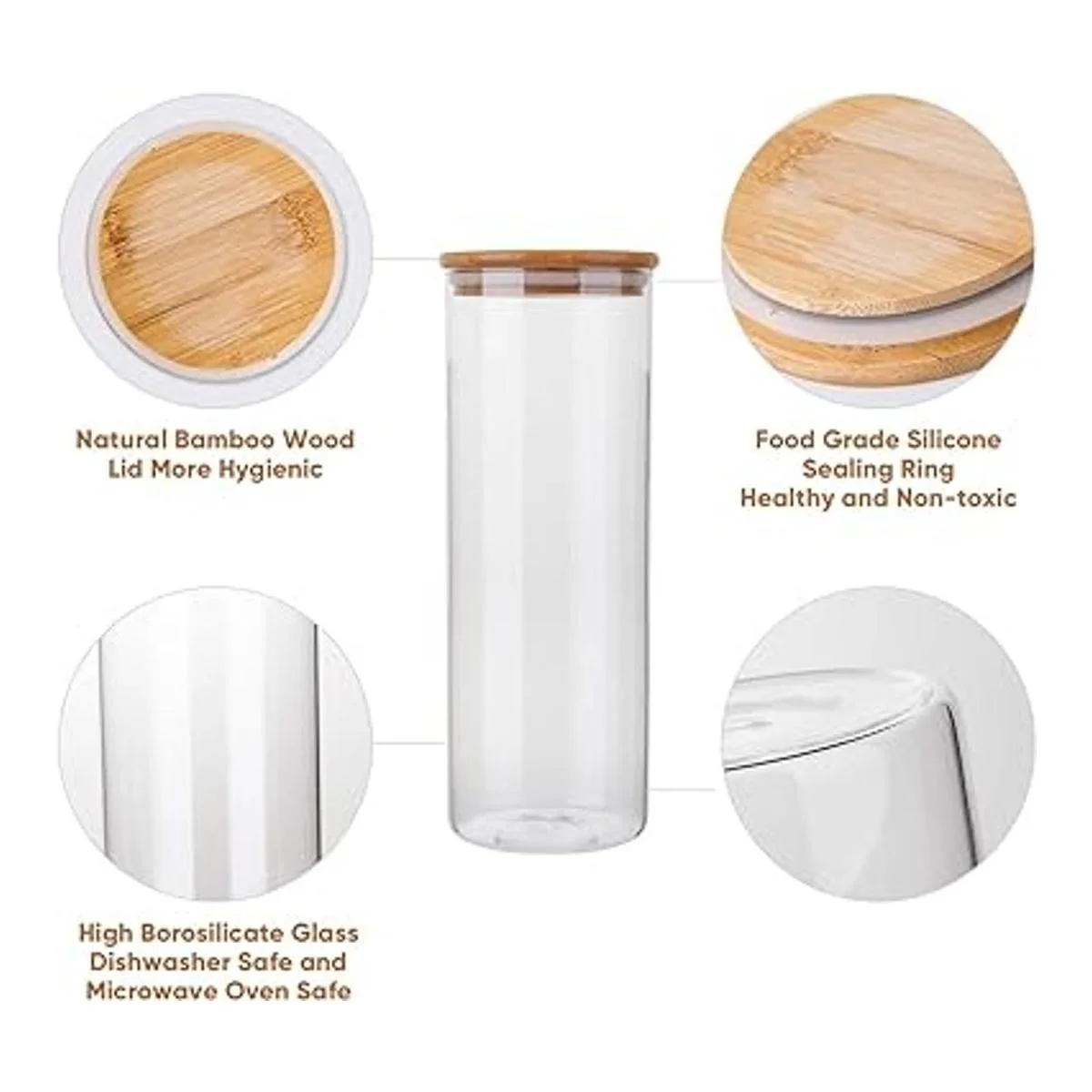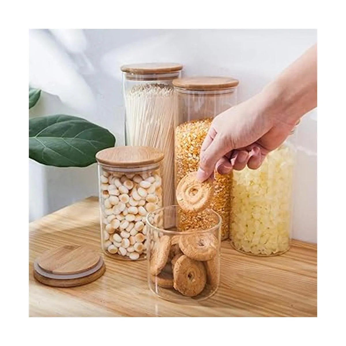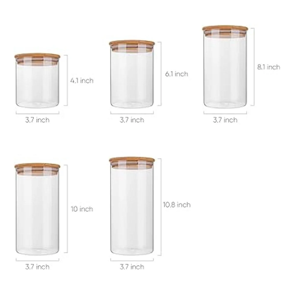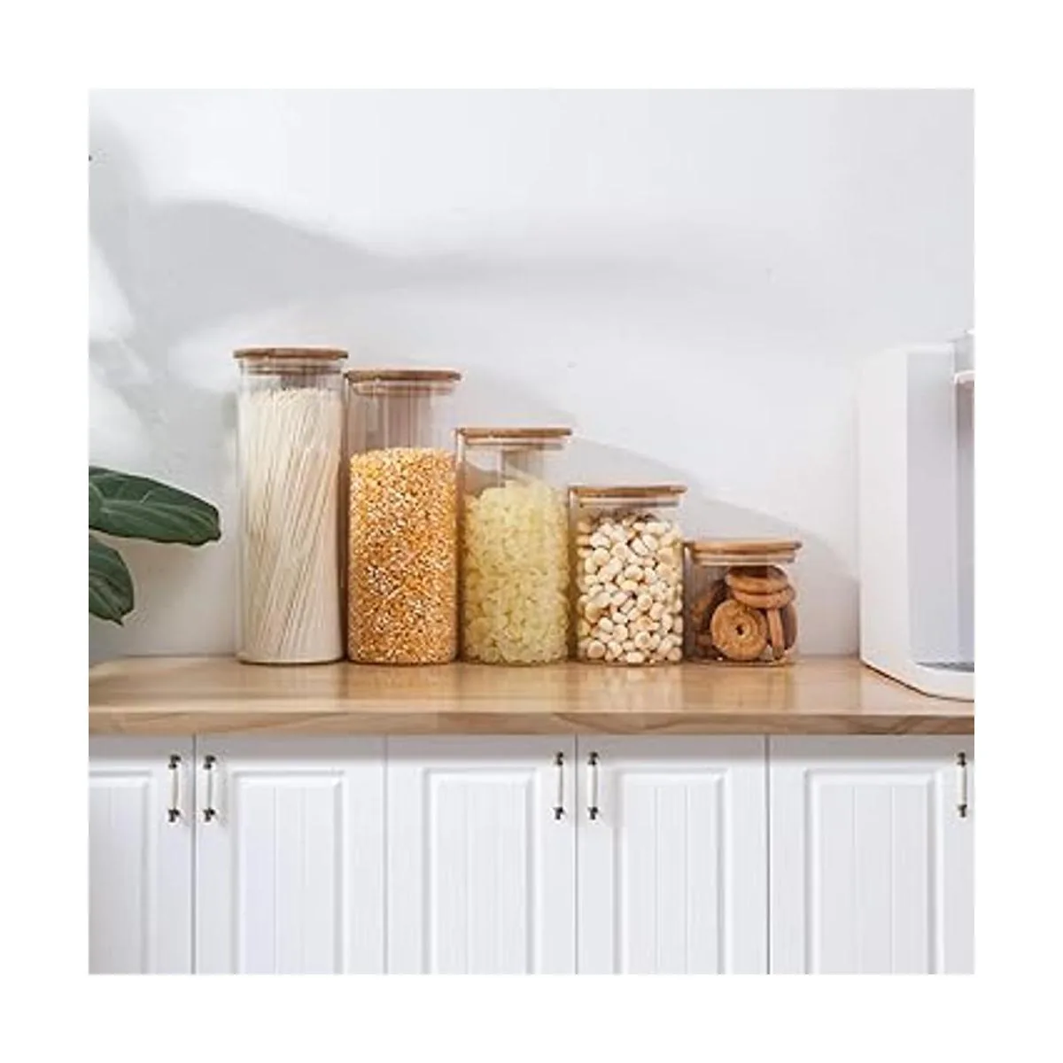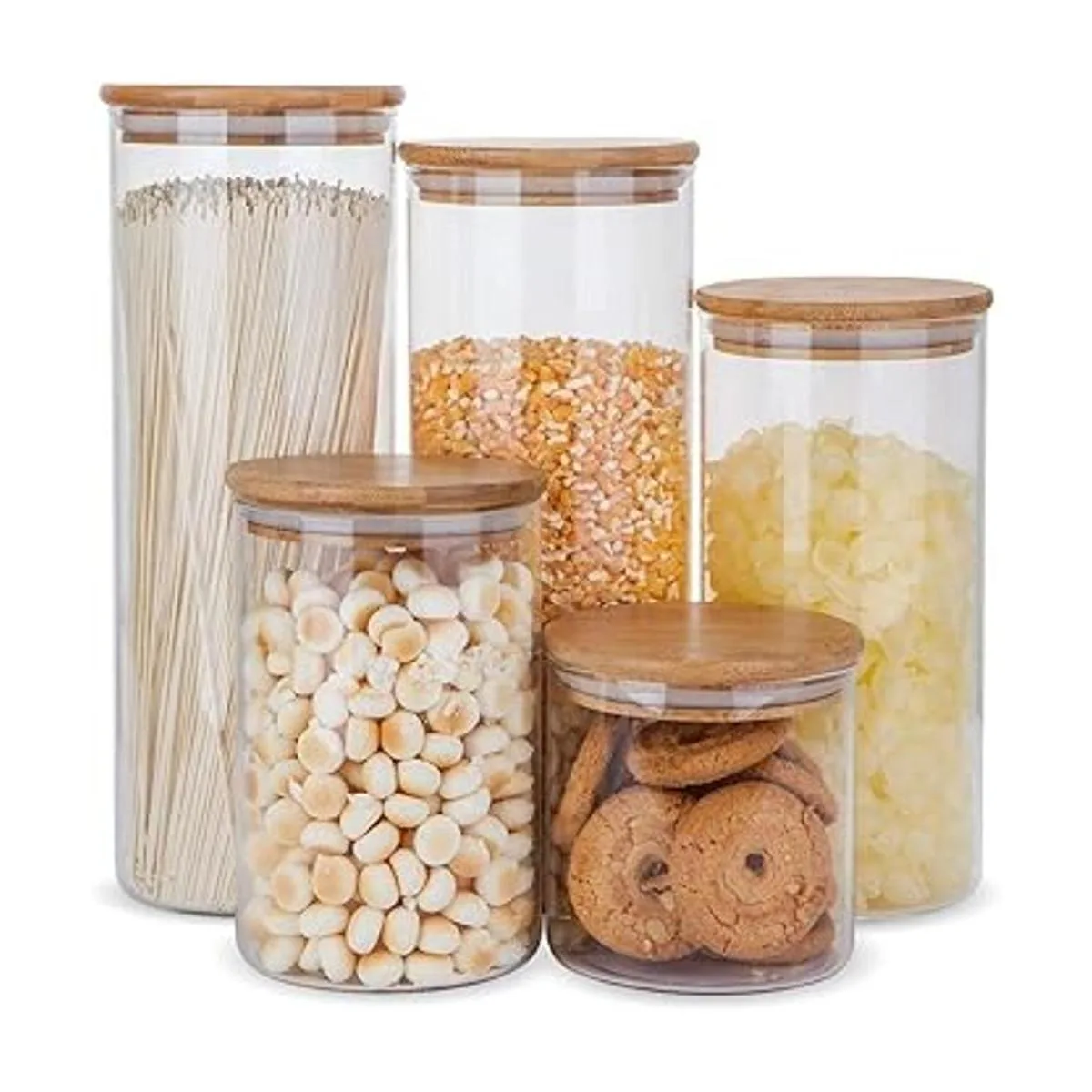 Juego de 5 recipientes de almacenamiento de alimentos herméticos con tapas de madera de bambú, recipientes de cocina para azúcar, dulces, galletas, arroz y especias