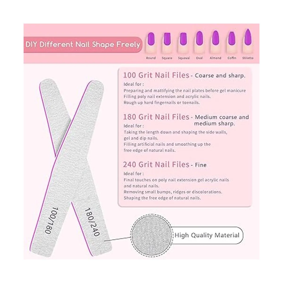 Limas de uñas a granel 180/240: limas de uñas 50 unidades por juego para satisfacer las grandes demandas por tecnología profesional de uñas o salón, lo que significa más económico en piezas individuales con limas de uñas de la misma calidad, ahorro de dinero en cada juego de uñas.