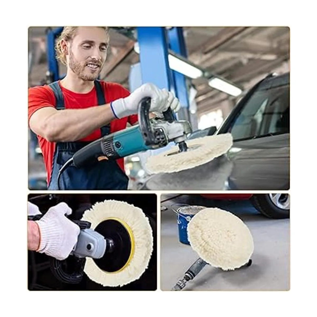 Material de lana natural: las almohadillas de pulido están hechas de material de lana natural, suave y delicado, lavable y adecuado para uso repetido, proporcionando un buen efecto de pulido sin rayar tu coche, listo para servirte durante mucho tiempo
