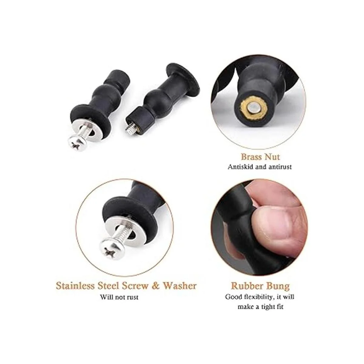 Duradero y resistente: el perno de goma extensible para inodoro está hecho de acero inoxidable 304 resistente para evitar el problema de la rotura de tornillos, ideal para bisagras rotas o viejas de asiento de inodoro.