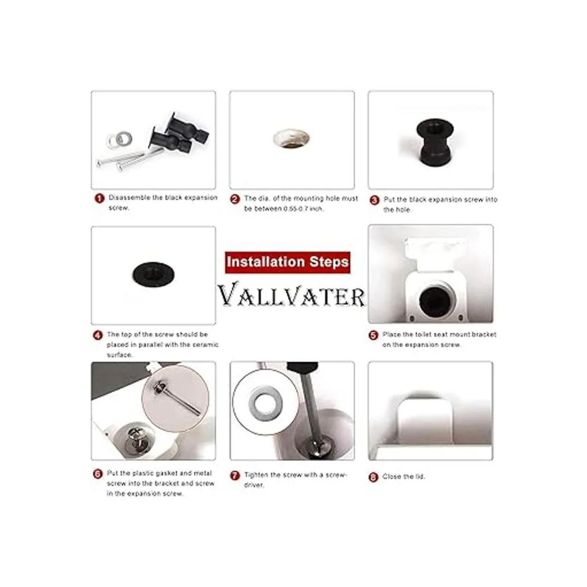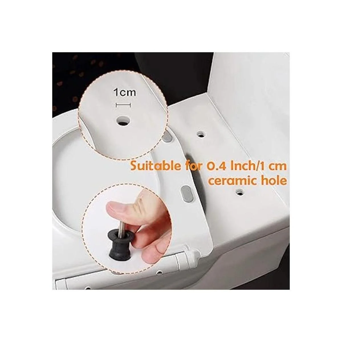 Aplicable solo a: solo apto para asiento de inodoro con bisagra de fijación superior con agujero de cerámica de 0.4 in. Este kit de fijación de agujero ciego para asiento de inodoro no es universal, por favor confirma al comprar.