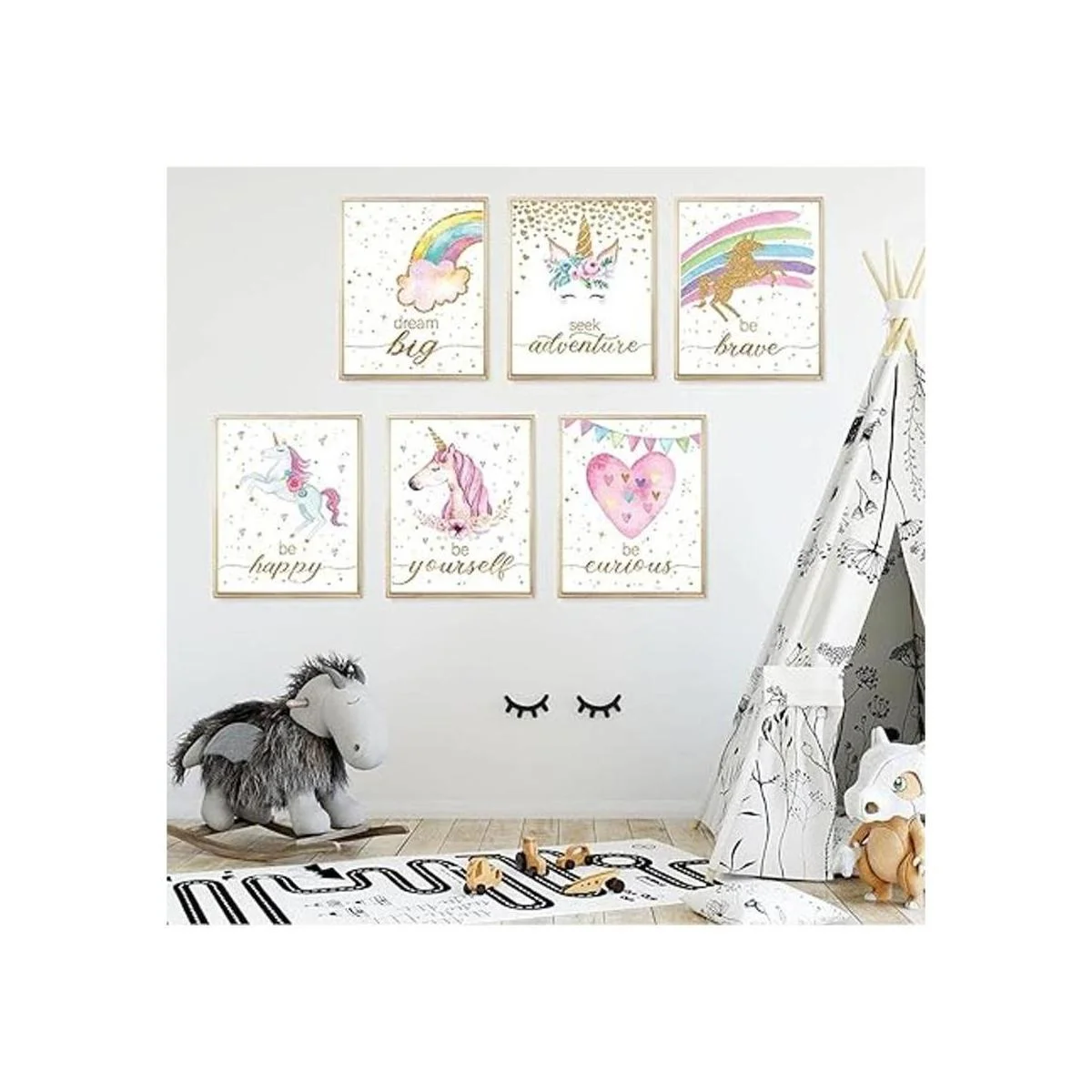 Juego de 6 carteles inspiradores de acuarela de unicornio 8.0 x 10.0 in, decoración de la habitación de los niños para niñas, decoraciones de habitación para el dormitorio, carteles para la habitación de las niñas adolescentes, sin marco