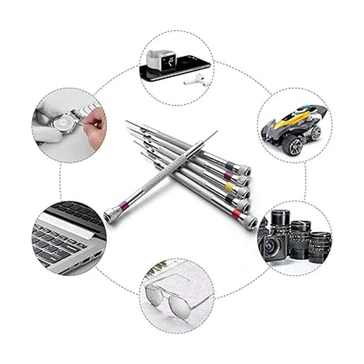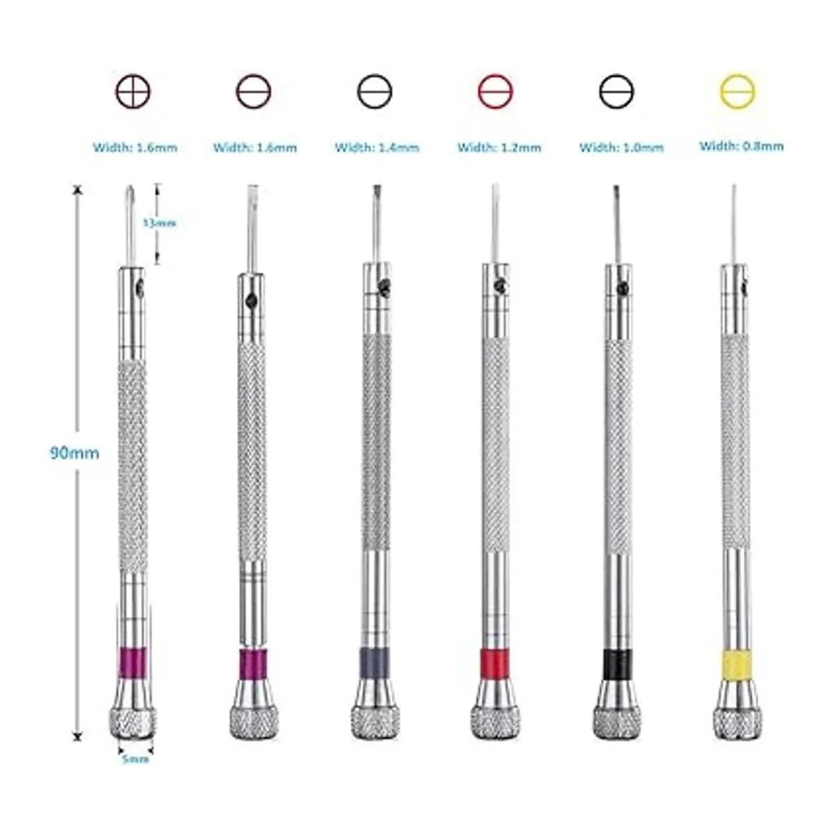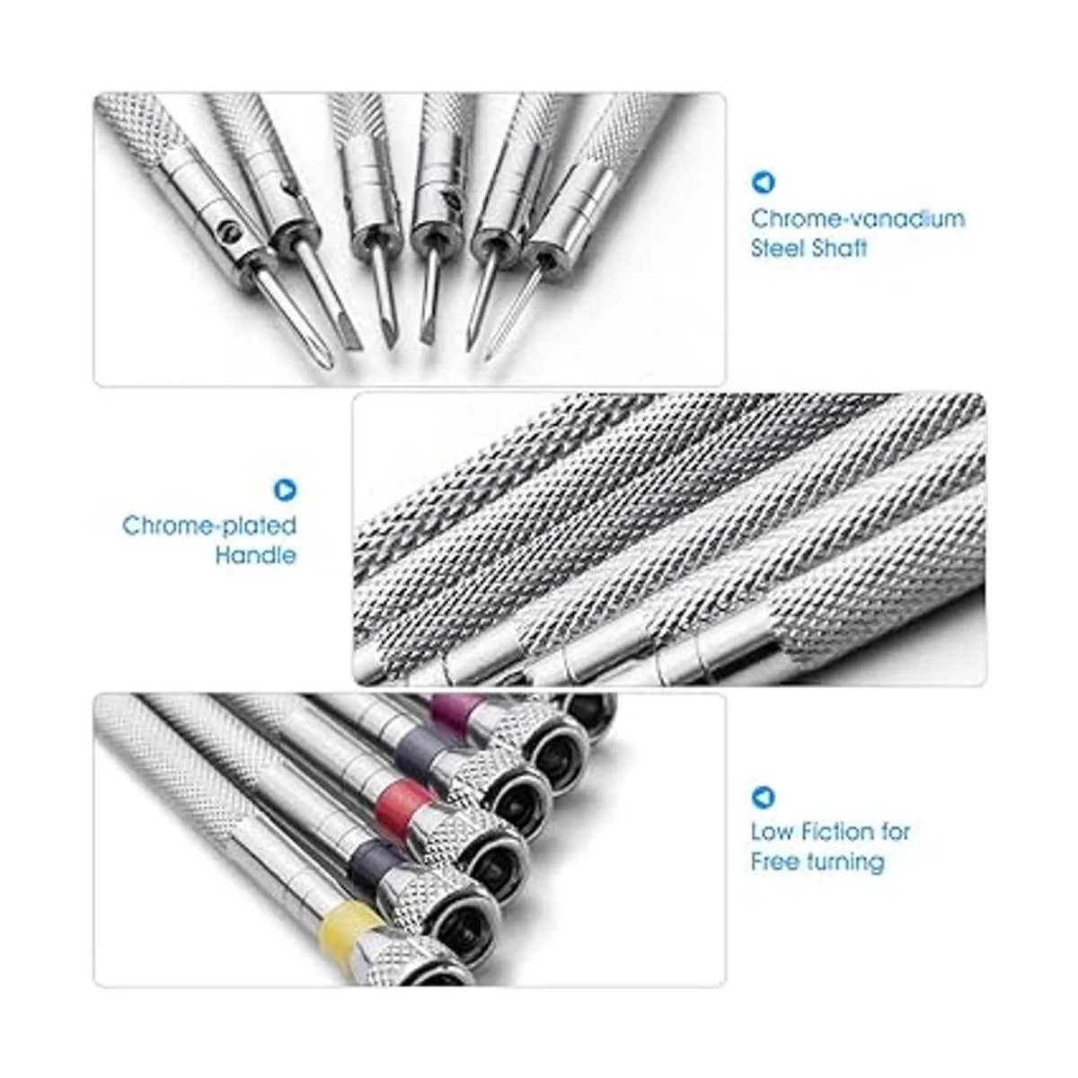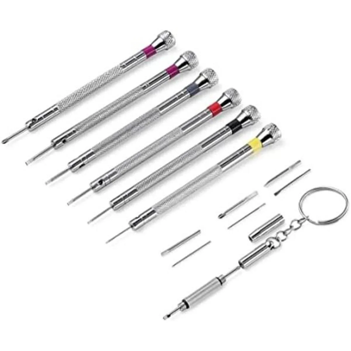 Multifuncional: juego de destornilladores de reparación perfecto para reparación de relojes, reemplazo de batería de reloj, quitar eslabones de tornillo de pulsera, reparación de gafas, trabajo de joyería y reparación de electrónica, etc.
