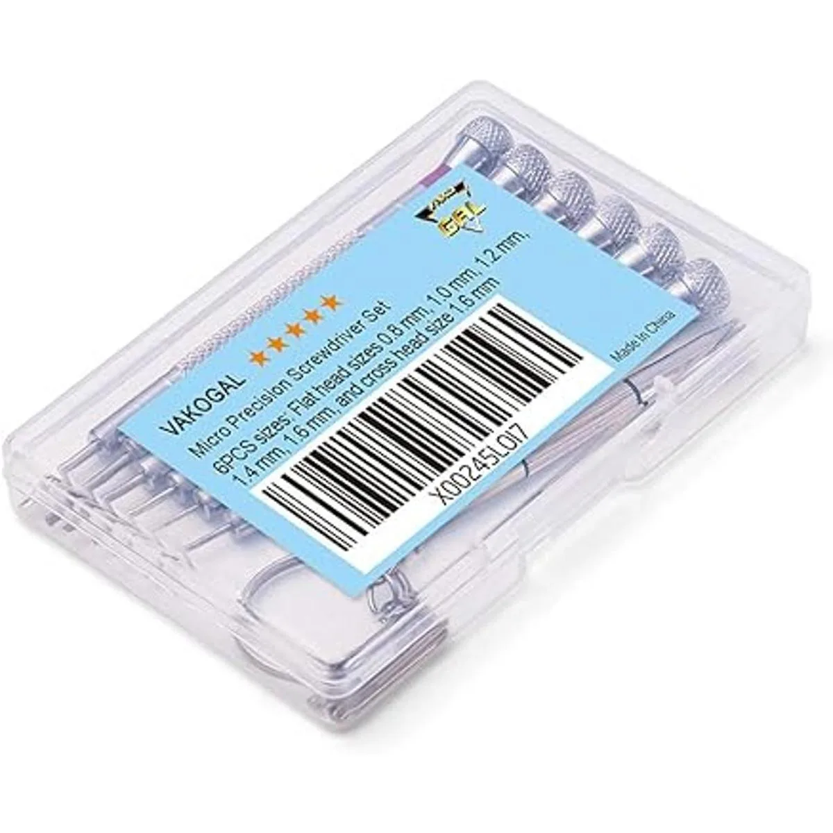 Juego de 6 destornilladores de micro precisión, VAKOGAL Premium de 0.031 0.063 in, 6 cuchillas de repuesto adicionales para reparación de relojes, reparación de gafas, trabajo de joyería, reparación de electrónica.