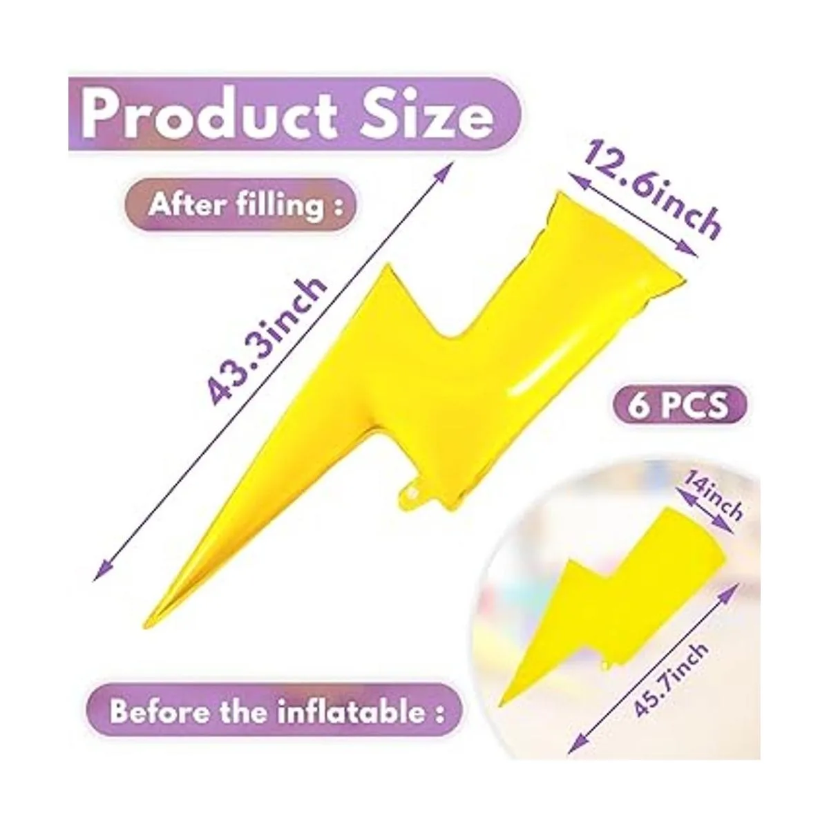 Juego de 6 globos de aluminio amarillo con pernos de rayo para fiesta, globos de aluminio de 45 pulgadas, globos de destello amarillos para fiestas, globos de mylar con forma de rayo, perno de aluminio, suministros de fiesta de cumpleaños para decoración de cumpleaños de boda