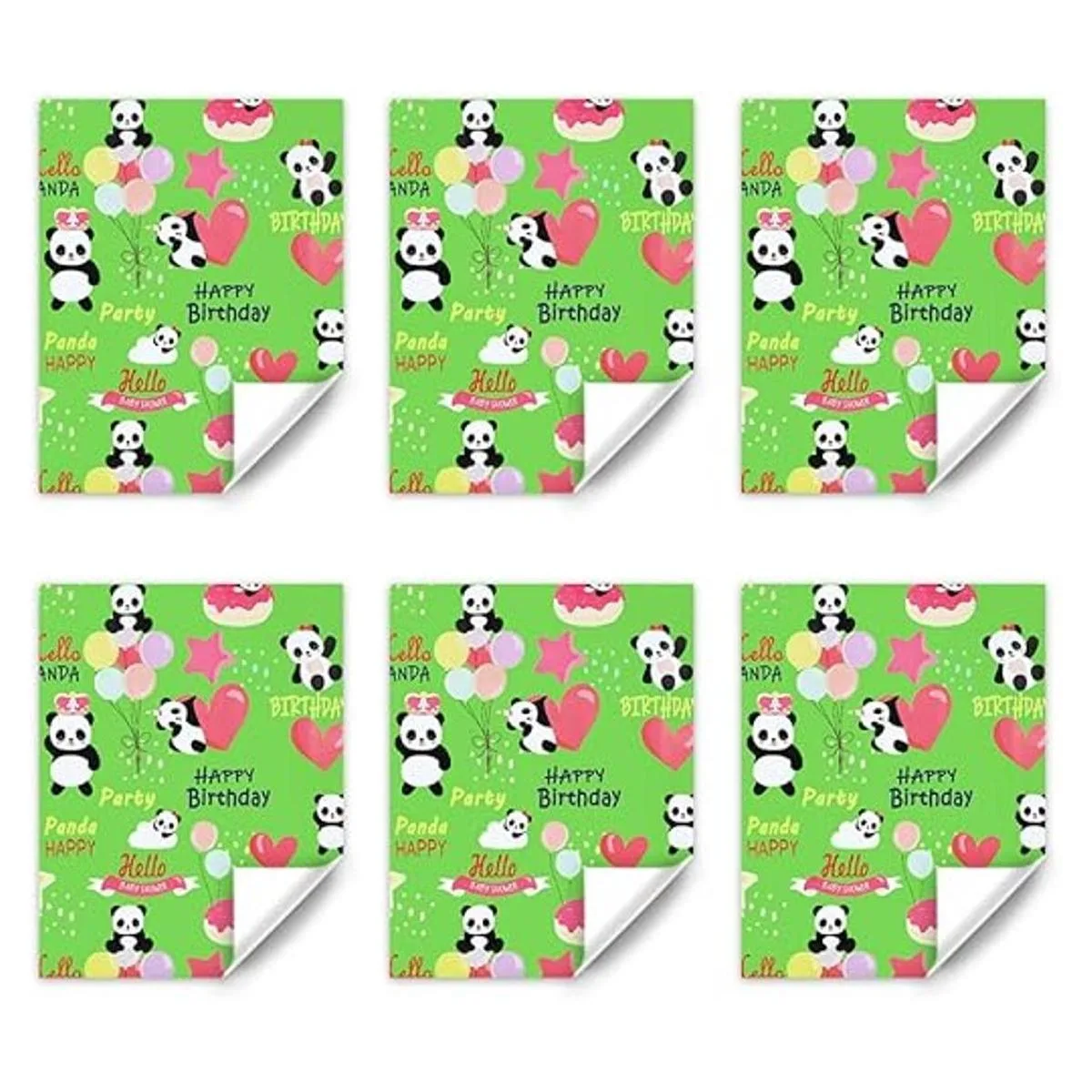 Juego de 6 hojas de papel de regalo de panda de feliz cumpleaños, plegadas, planas de 20 x 28 pulgadas por hoja, para niños, niñas, niños, hombres, mujeres, color verde brillante, feliz cumpleaños, fiesta de panda, carta de bienvenida con globos con estrellas y corazones rojos, para todas las ocasiones de cumpleaños, baby shower, kindergarten party
