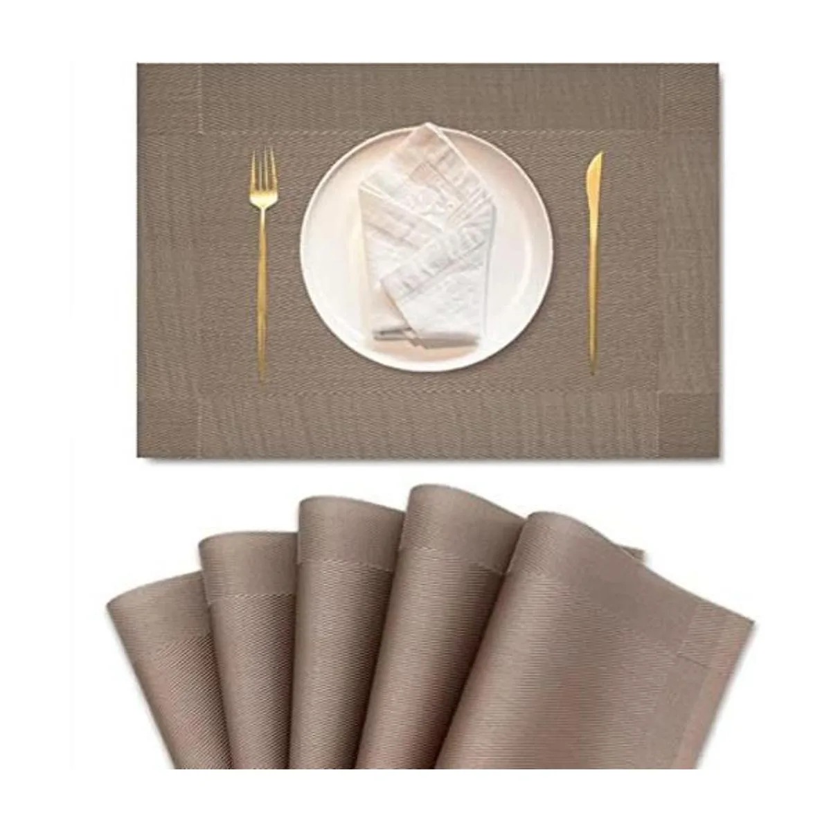 Juego de 6 manteles individuales de PVC resistentes al calor, lavables, de doble cara, fáciles de limpiar, adecuados para mesa de comedor, cocina, restaurante marrón dorado
