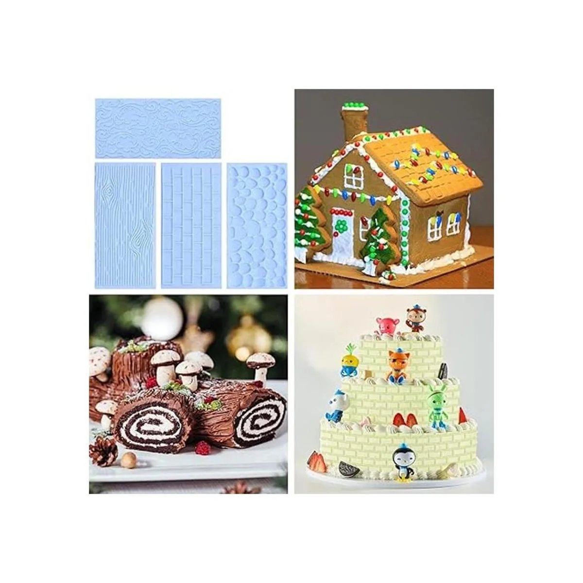 Juego de 6 moldes de fondant para decoración de pasteles, corteza de árbol en relieve, pared de ladrillo, flor, adoquín, pared de piedra, diseño de textura de encaje de vid