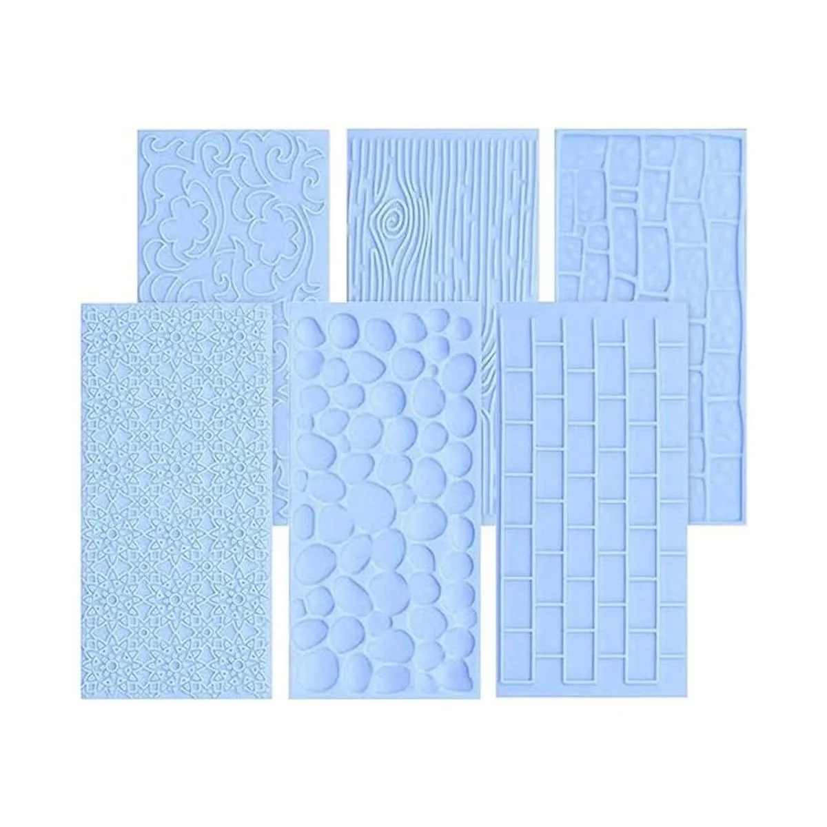 Material de alta calidad: estos seis moldes de fondant están hechos de plástico duro y antiadherente de buena calidad y tienen el mismo tamaño que mide 5.8 x 2.8 in. Color: azul claro. Esta alfombrilla de impresión de fondant dura te ayudará a permitir un fácil posicionamiento y alineación. Y también, estos moldes de fondant se pueden utilizar como patrones en relieve también se pueden utilizar como plantillas de glaseado.