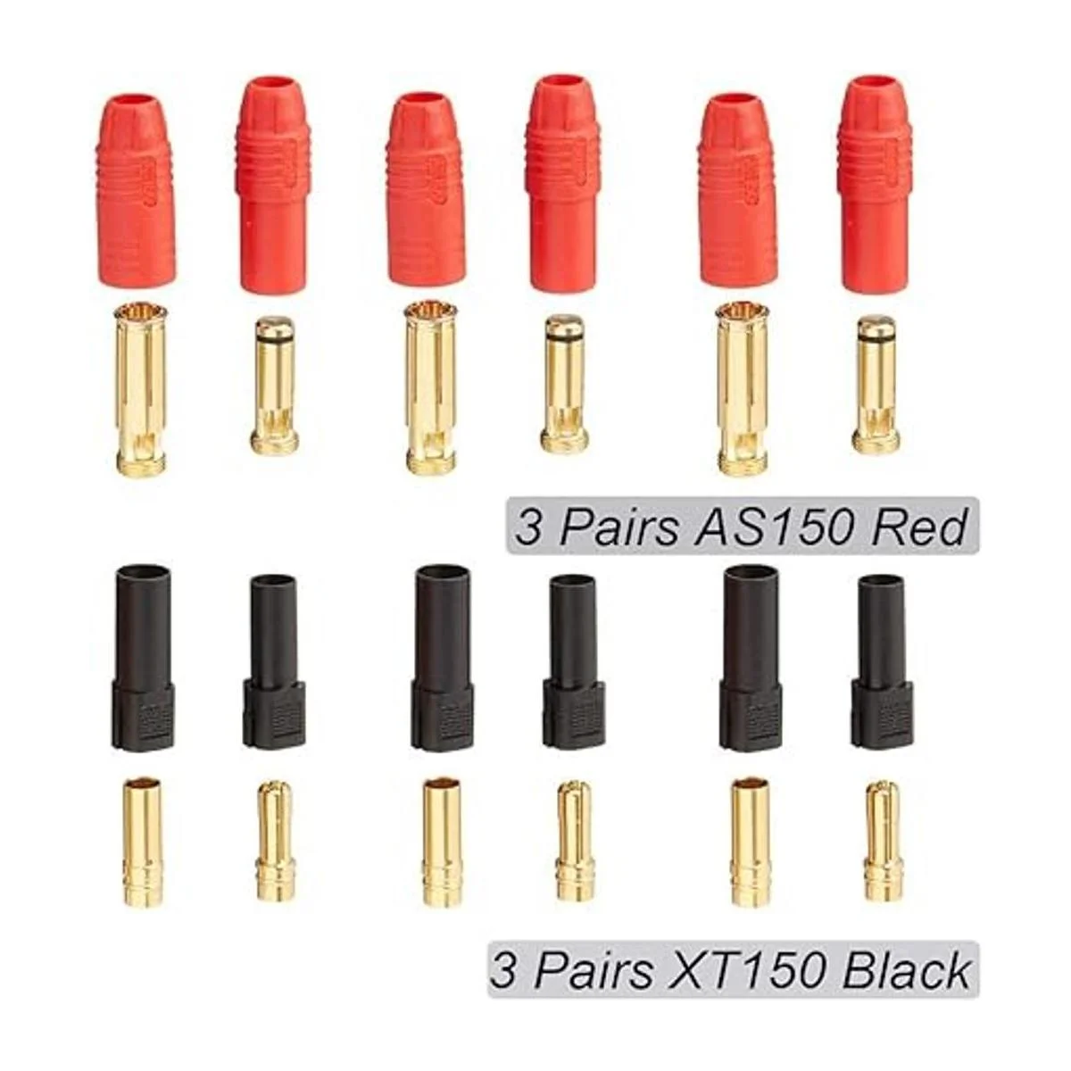Juego de 6 pares de conectores Amass AS150 y XT150 macho hembra anti chispa para batería DJI S1000 S900 ESC y cable de carga 3 pares AS150 rojo3 pares XT150 negro