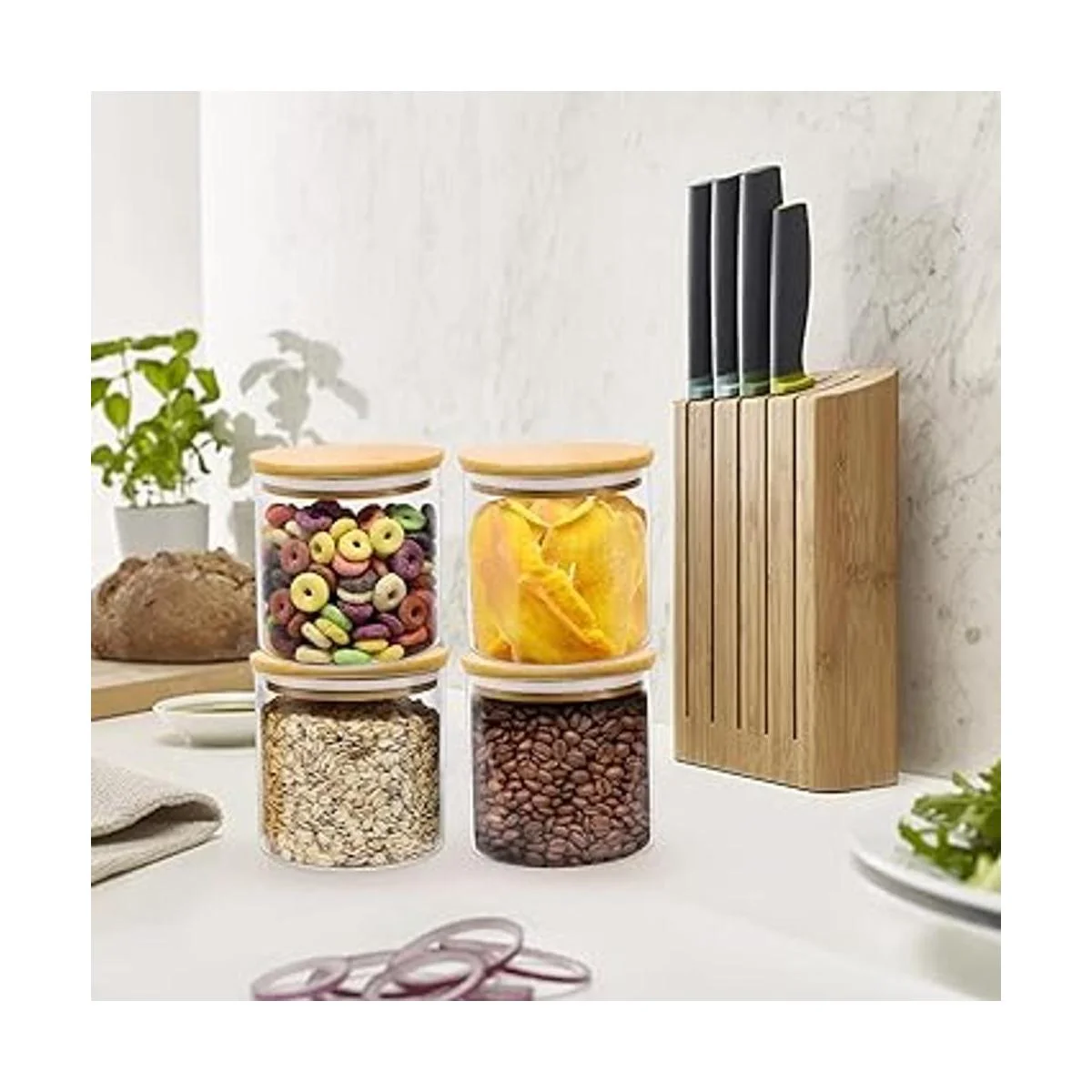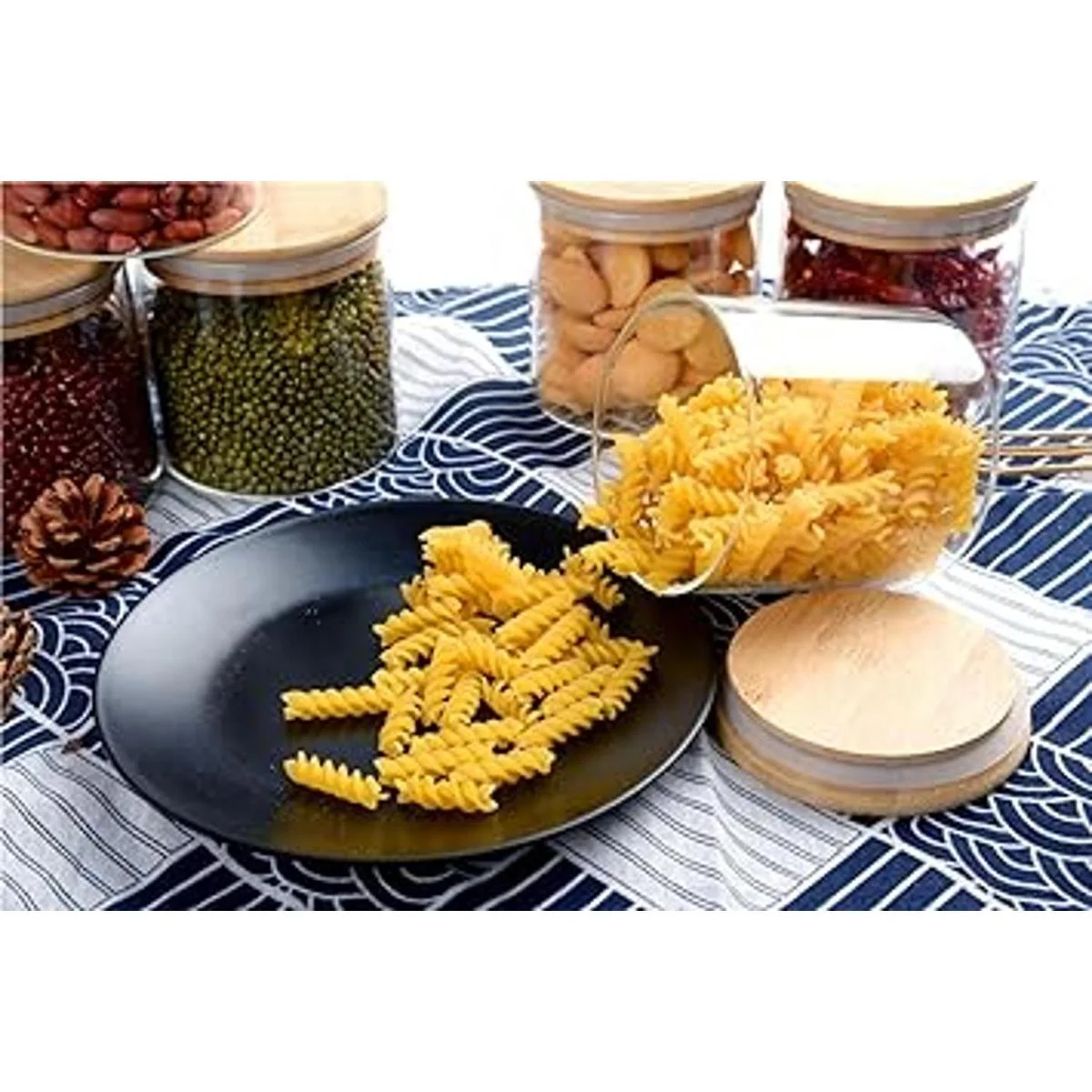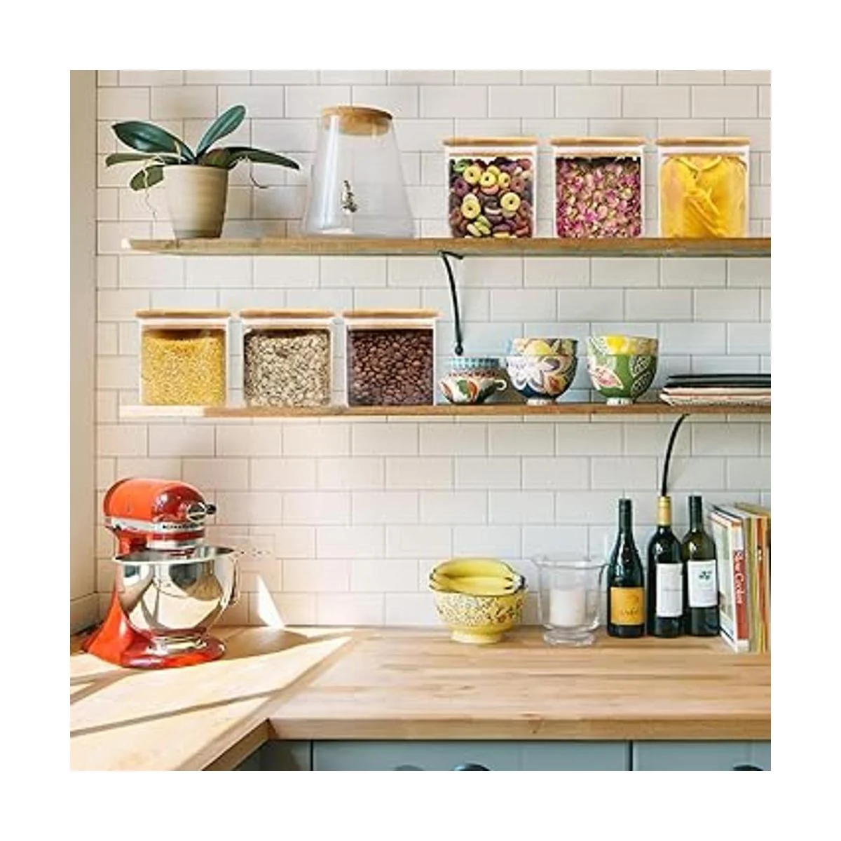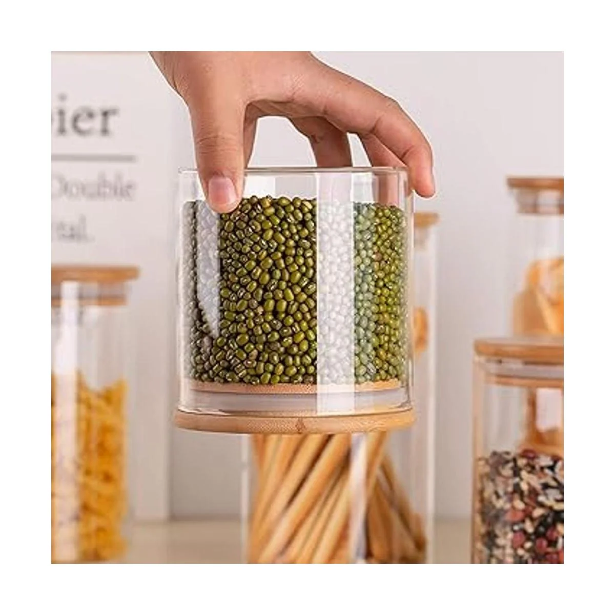 Amplia aplicación: la cubierta de bambú está sellada con un anillo de goma para una alta confidencialidad, perfecta para alimentos secos frijoles, arroz, pasta, productos horneados harina, polvo, sal/azúcar, té y especias u otros ingredientes