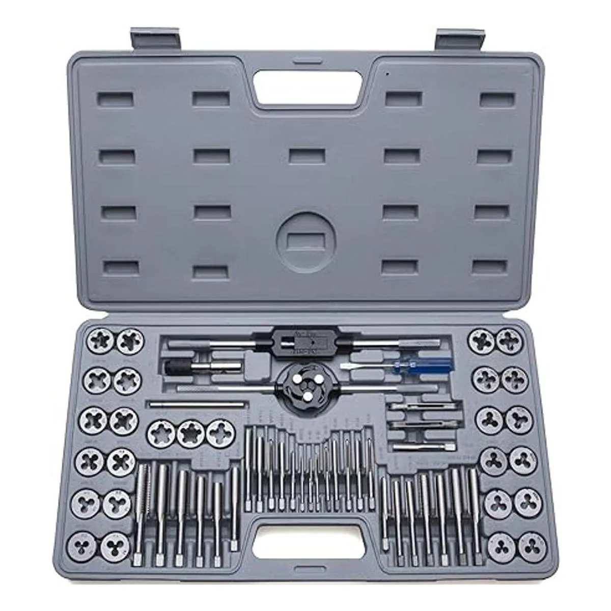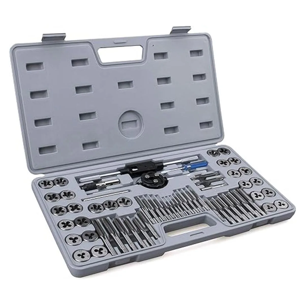 Juego de 60 grifos y troqueles maestros Incluye SAE pulgadas de tamaño 4 a 12 pulgadas y tamaño métrico M3 a M12, roscas gruesas y finas. Kit de herramientas de roscado esencial con accesorios completos y estuche de almacenamiento