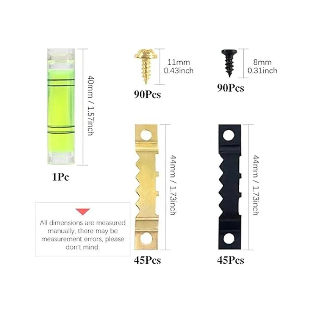 7 modelos de colgadores de cuadros con mini gradiente: el paquete incluye 231 colgadores de cuadros surtidos con 370 tornillos surtidos. Hemos preparado 7 modelos de colgadores para cuadros, incluyendo dientes de sierra negro, dientes de sierra dorados, anillos en D, anillos triangulares, anillos en D de un agujero, anillos en D con agujeros dobles, ganchos para cuadros de tres agujeros. Así que estos colgadores pueden satisfacer todas tus necesidades y ayudarte a resolver problemas de colgar fotos. Te lo mereces