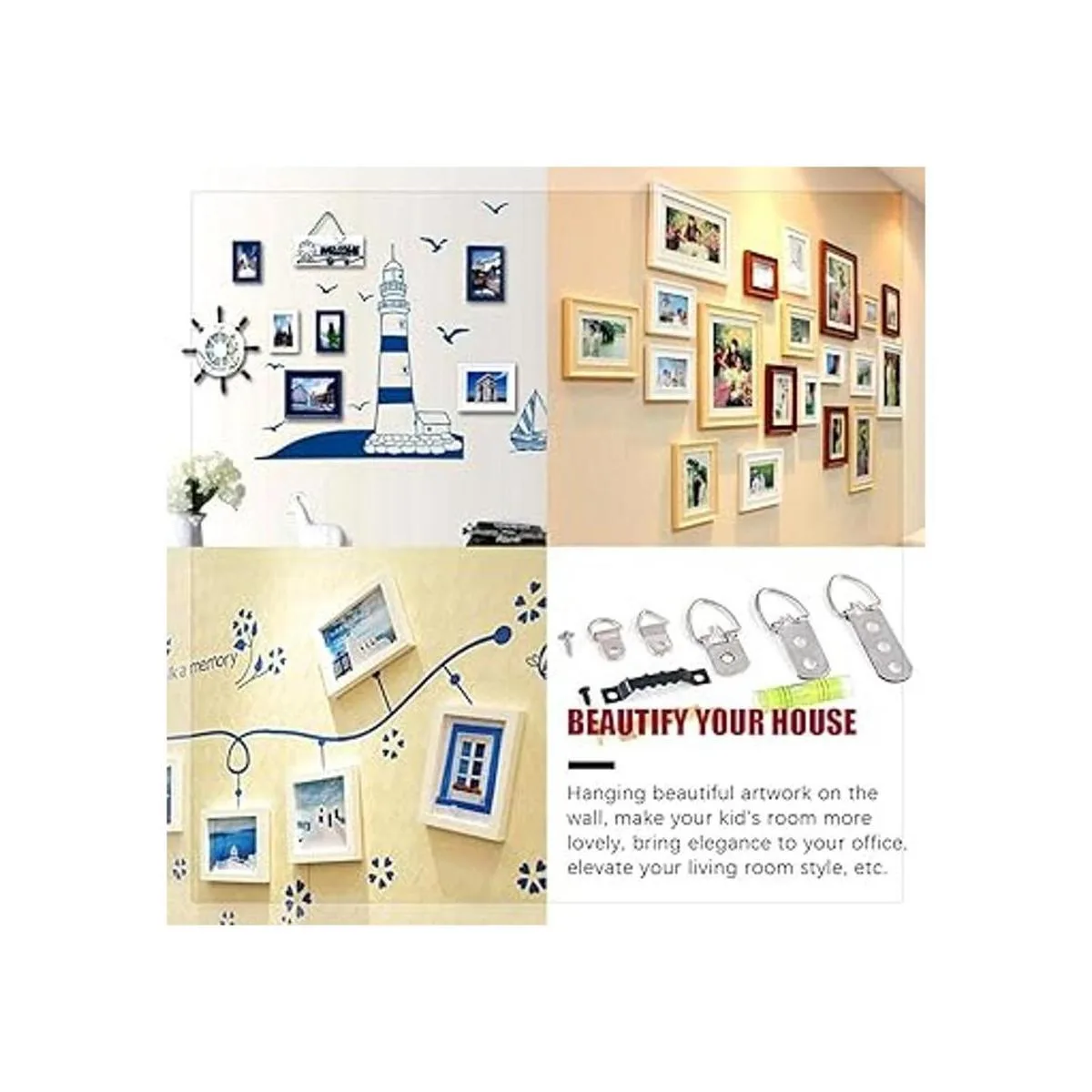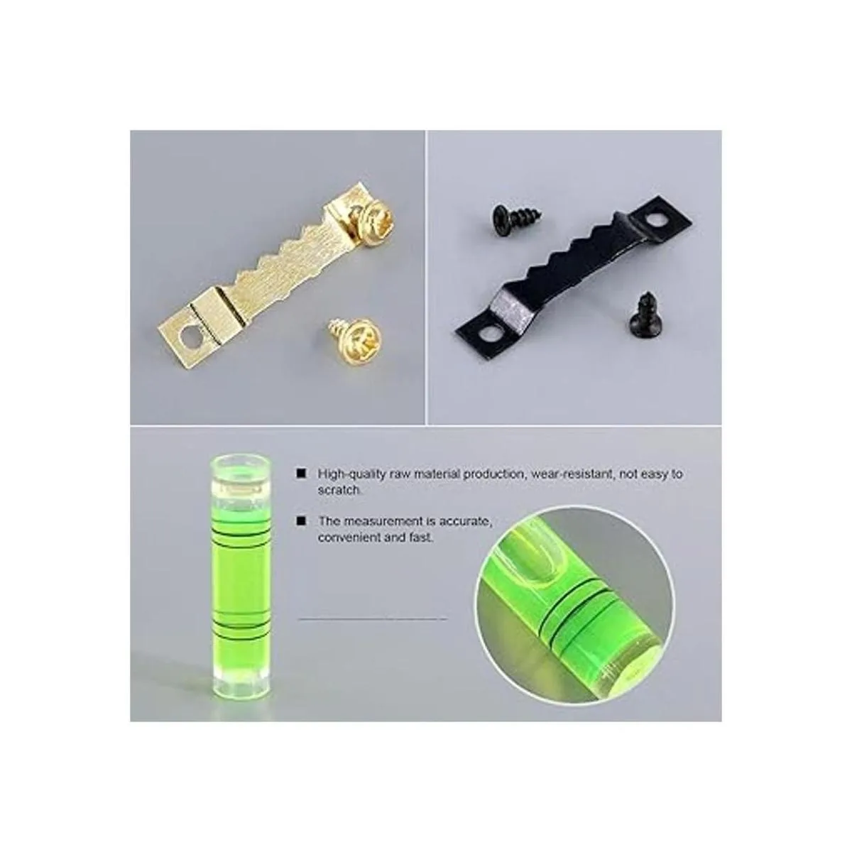 Alta calidad Colgador de cuadros resistente y fuerte que soporta 39.7 lbs, hay muchas piezas en el interior, por lo que se puede utilizar mucho tiempo y se puede resolver el problema de colgar fotos durante mucho tiempo.