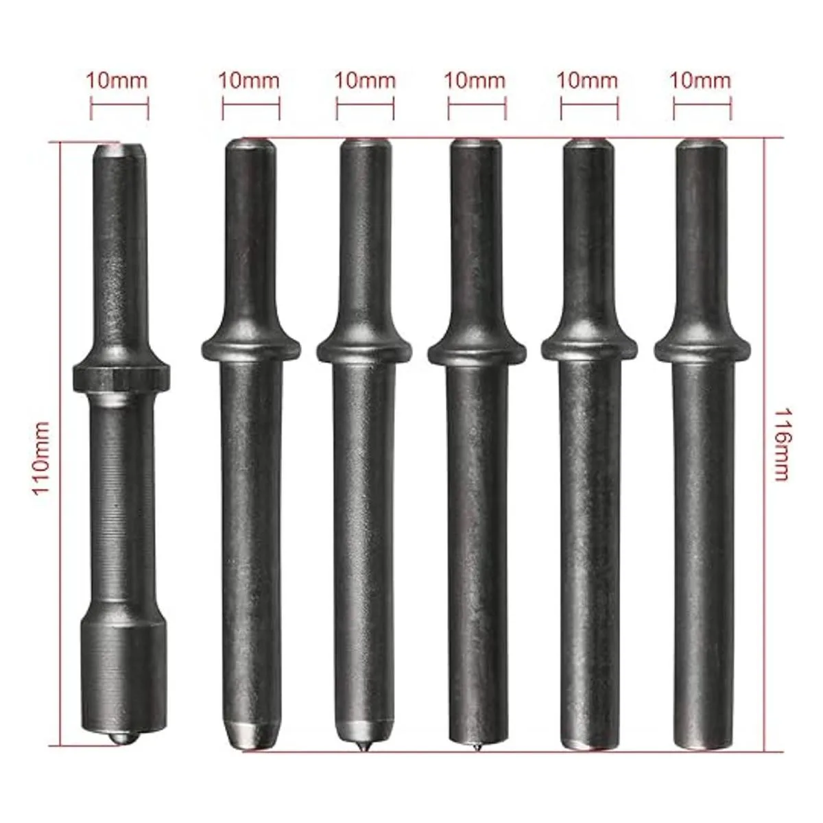 El paquete incluye: 6 martillos de remache neumático de alta resistencia para suavizar, 1 resorte.