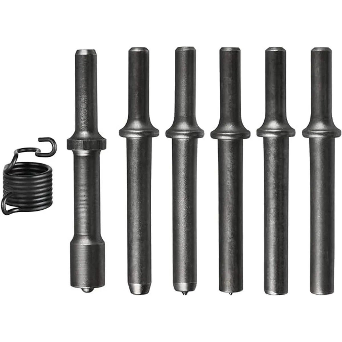 Juego de 7 brocas para martillo neumático 0.401 vástago de alta resistencia para suavizar remaches de aire neumáticos, brocas de cincel de longitud extendida con resorte