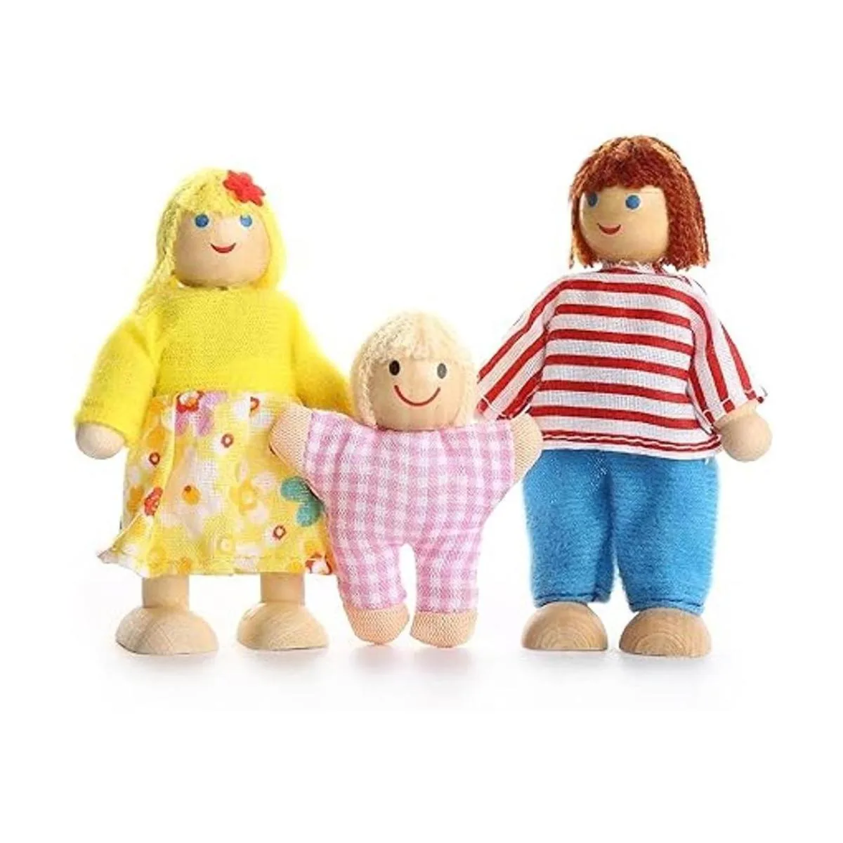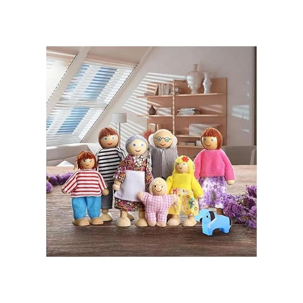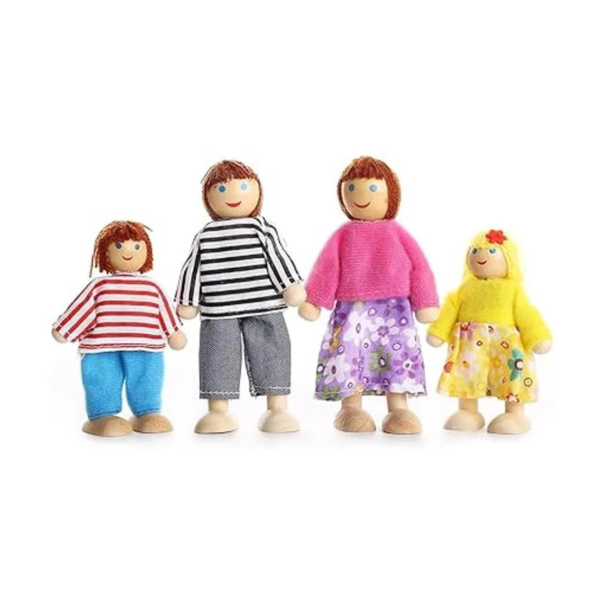 Diseño detallado y figuras de juego de alta calidad: cada miembro de la familia tiene sus propios trajes detallados, ropa de color y estilos de pelo. La familia de las casas de muñecas de juguete está totalmente vestida y hecha de madera natural de alta calidad y tela de lana, no es tóxica y respetuosa con el medio ambiente.