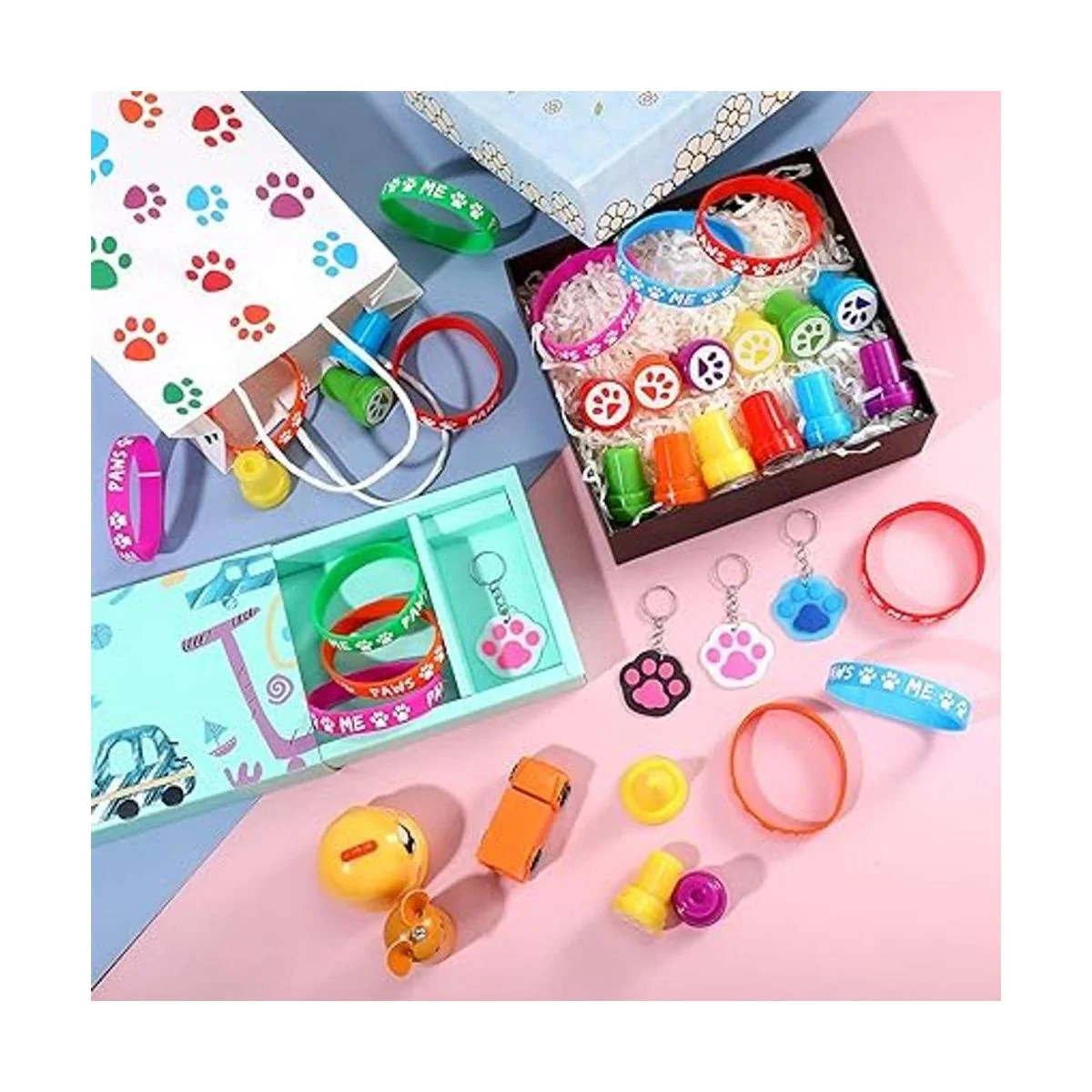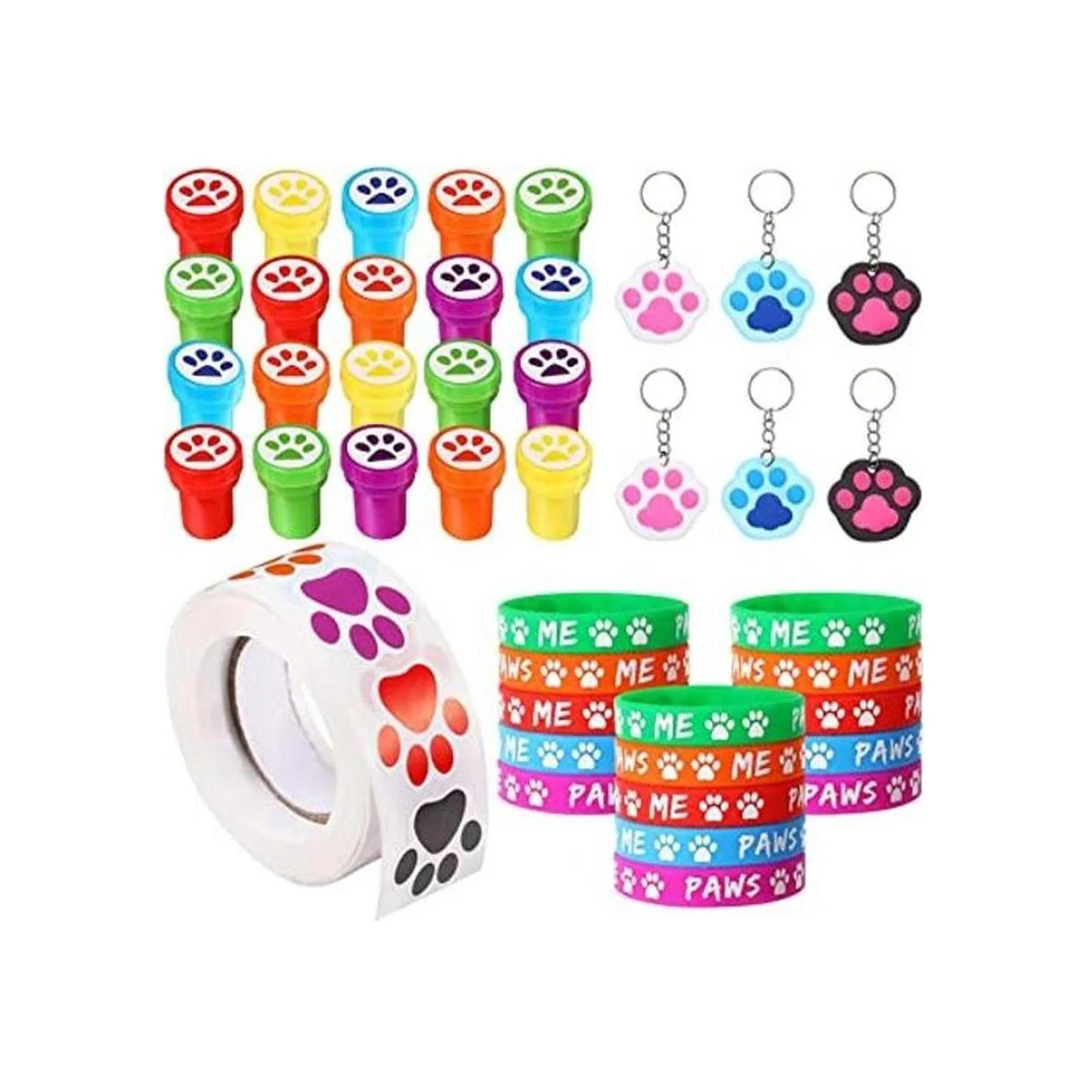 Bonitos regalos y recompensas: pulseras con huellas de patas, sellos, calcomanías y llaveros son muy adecuados para fiestas temáticas de patas de perro, suministros de fiesta de cachorros, baby showers, picnics, premios de clase, premios de cofre del tesoro, premios de carnaval, suministros de vuelta a la escuela, bonitos regalos de fiesta para perros, regalos de devolución de fiesta, rellenos de bolsas de regalo, regalos de fiesta de Halloween, rellenos de medias de Navidad, etc.