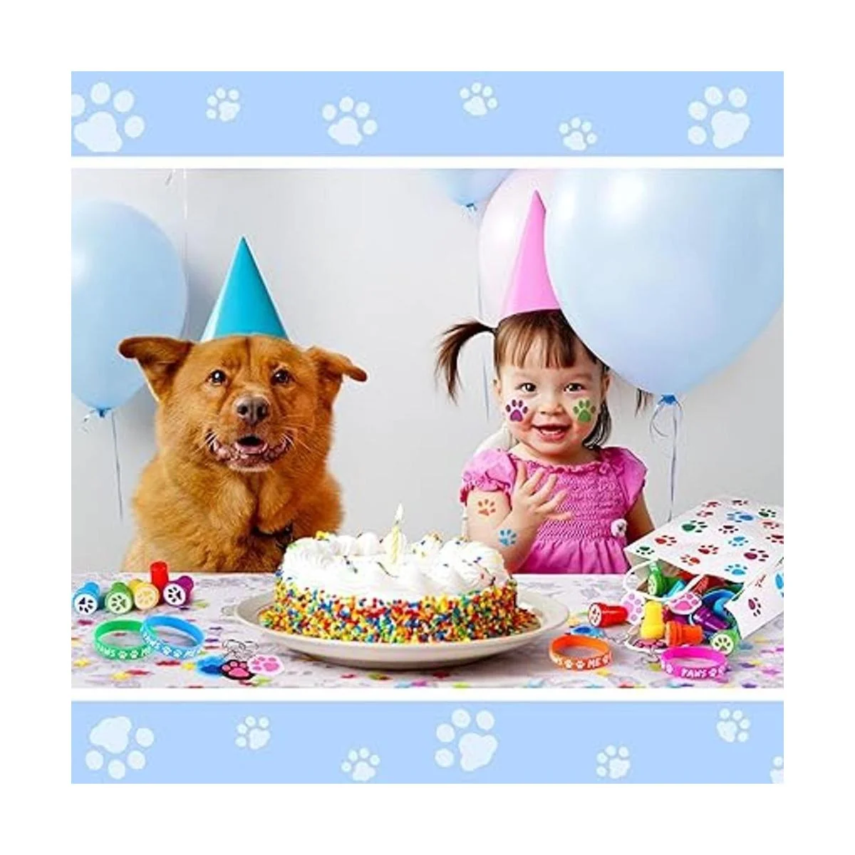 Juego de 70 recuerdos de fiesta de patas de perro, suministros de fiesta con estampado de patas de perro, pulsera de silicona con estampado de patas, llavero, suministros de fiesta de cachorros para niños varios colores