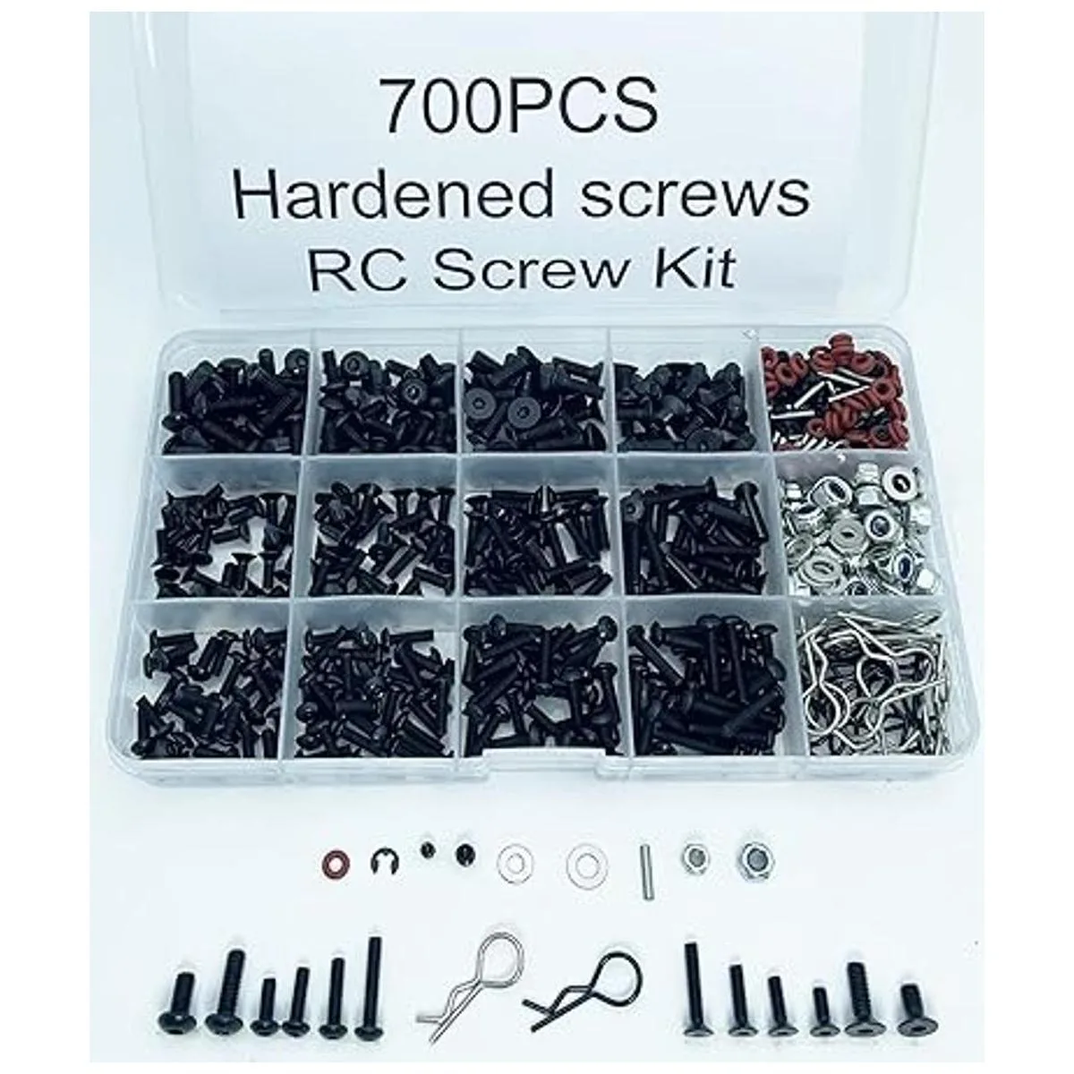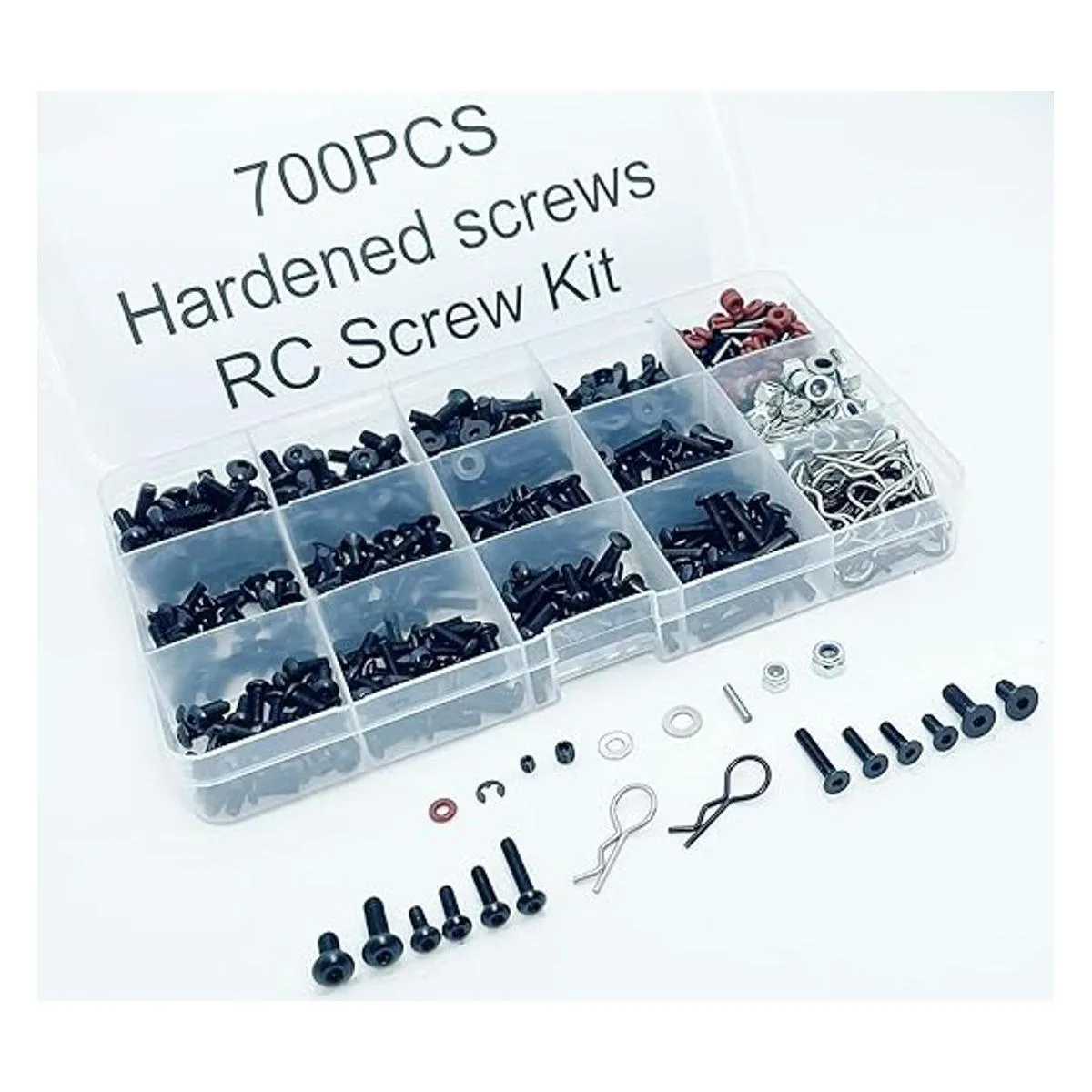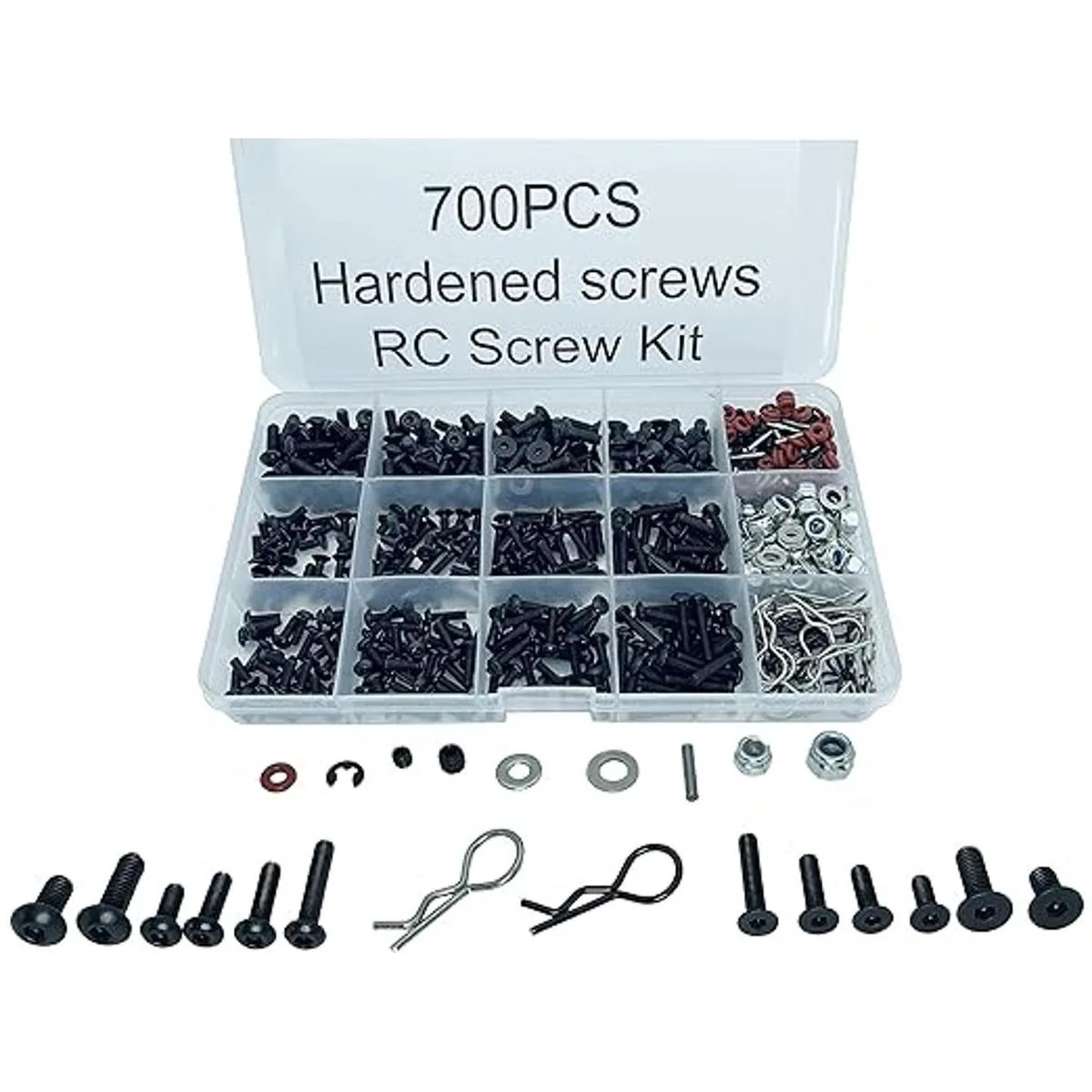 Juego de 700 tornillos universales para control remoto, juego de tornillos surtidos, sujetadores de hardware para Traxxas Axial Redcat HPI Arrma SCX10 Losi 18 110 112 116 Escala RC Coches Trucks Crawler, kit de tornillos RC, clips de carrocería de coche