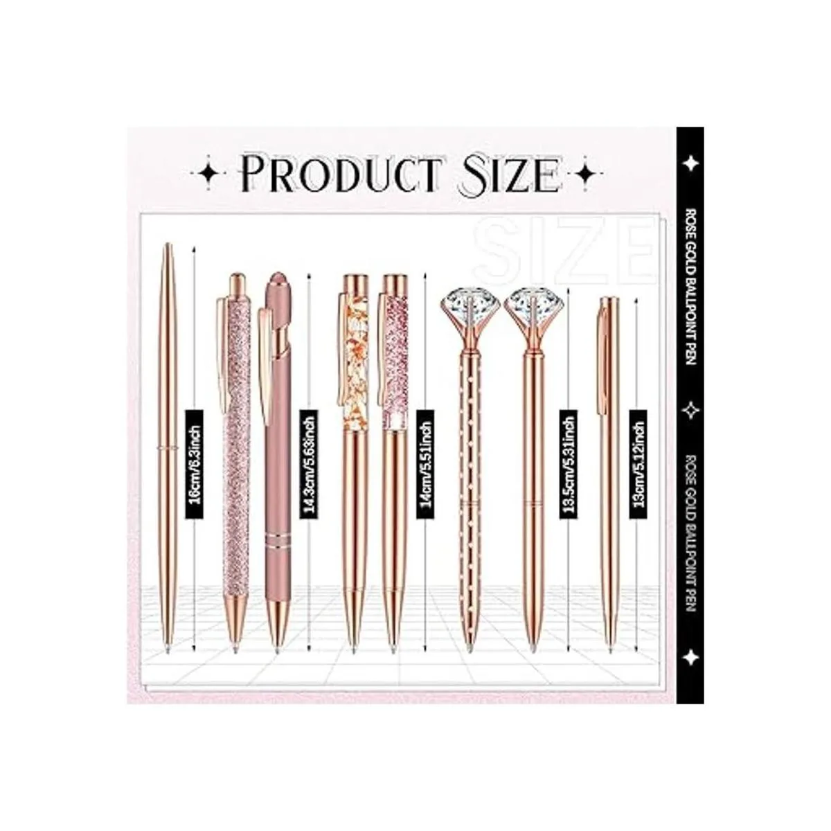 Juego de bolígrafos surtidos: hay 8 bolígrafos de oro rosa en el paquete, que están disponibles en 8 diseños, una pieza para cada diseño; la cantidad abundante y los diseños divertidos pueden satisfacer tus diversas necesidades de uso y reemplazo en la vida diaria