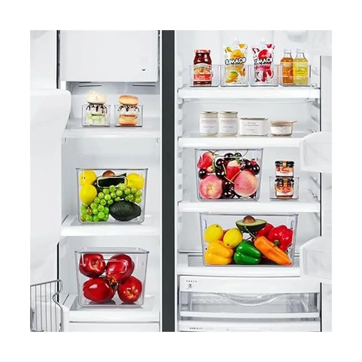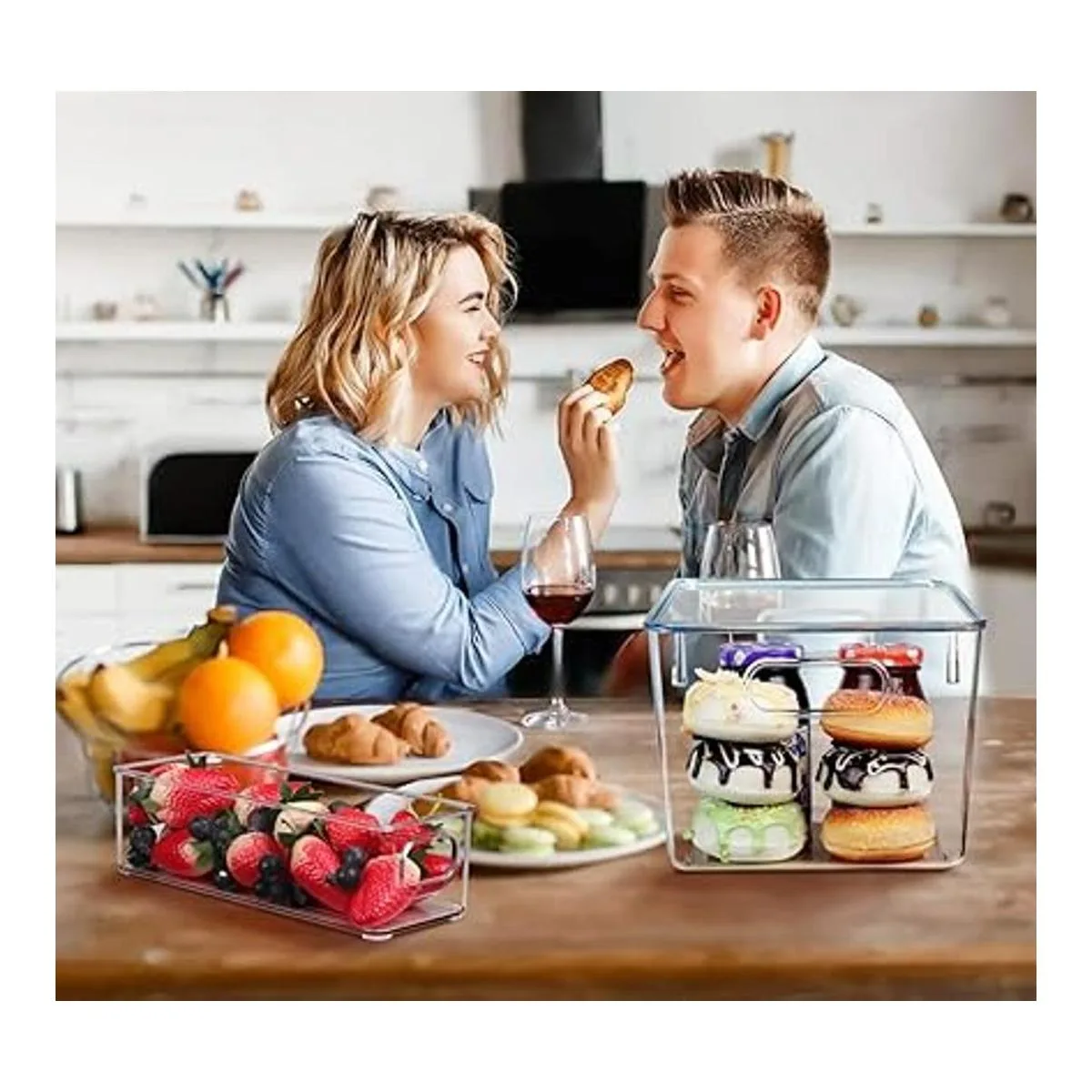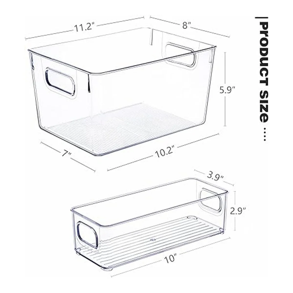 Transparente sin tapas: los contenedores de plástico transparente te permiten encontrar lo que necesitas fácil y rápidamente, ahorrando mucho tiempo de búsqueda y manteniendo las cosas ordenadas. Estos contenedores transparentes de almacenamiento para refrigerador se pueden utilizar en refrigeradores, armarios, despensas, baños, dormitorios, oficinas, cajones, salas de juegos, cocinas y tocadores, etc.