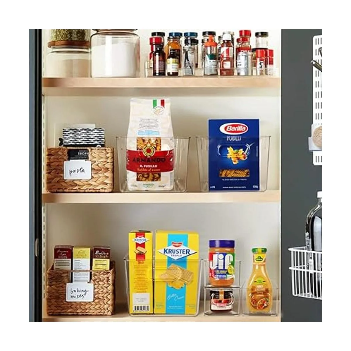 Juego de 8 contenedores de almacenamiento de plástico transparente, 4 contenedores de almacenamiento apilables grandes y 4 pequeños para organización de despensa y contenedores de almacenamiento de cocina, edición del hogar y organizadores de gabinetes
