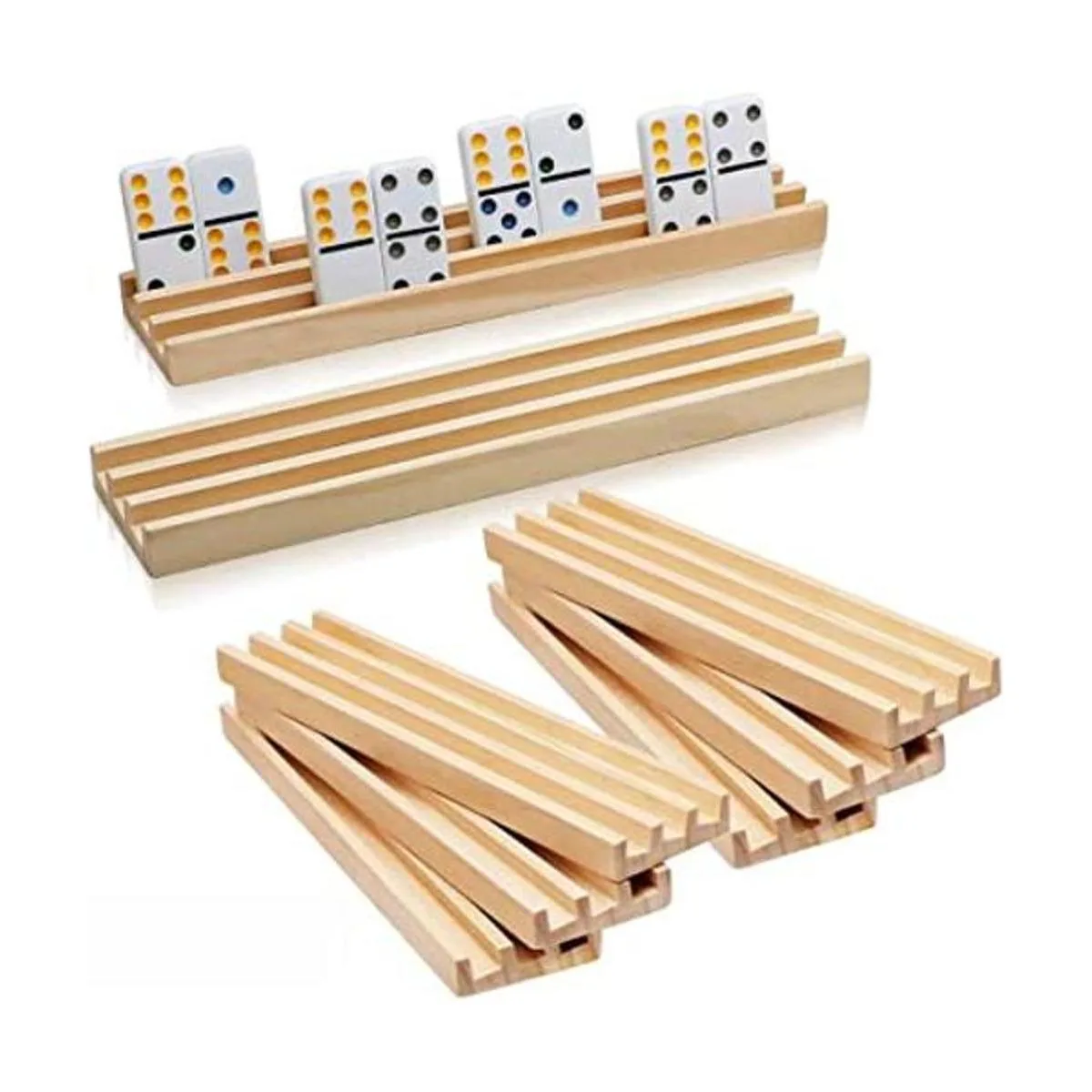 Juego de 8 estantes de madera para dominó Exqline Premium para bandejas de dominó organizadores para tren mexicano y otros juegos de dominó Dominó no incluido