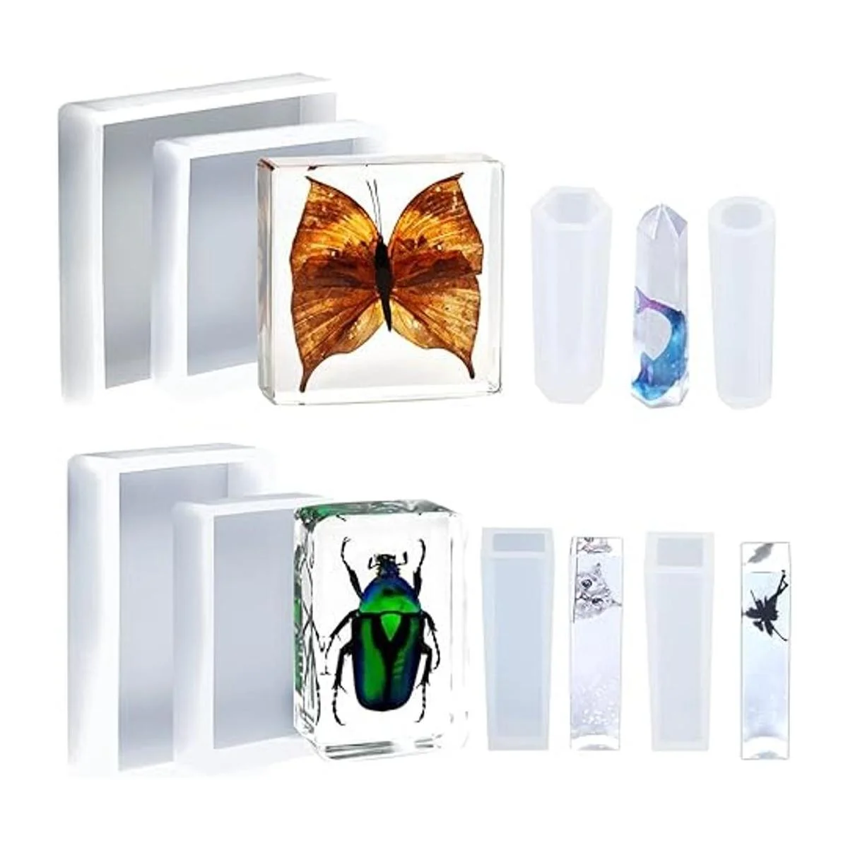 Fácil de usar: el paquete incluye 8 moldes de resina de diferentes tamaños, se puede utilizar para hacer diorama de resina oceánica, peso de papel, muestras o flores en resina, colgante de collar de terrario, joyería minimalista, lámpara de incrustación LED, bloque de cristal, adorno de mesa, artesanía de arcilla polimérica, jabón casero, proyectos de arte y mucho más.