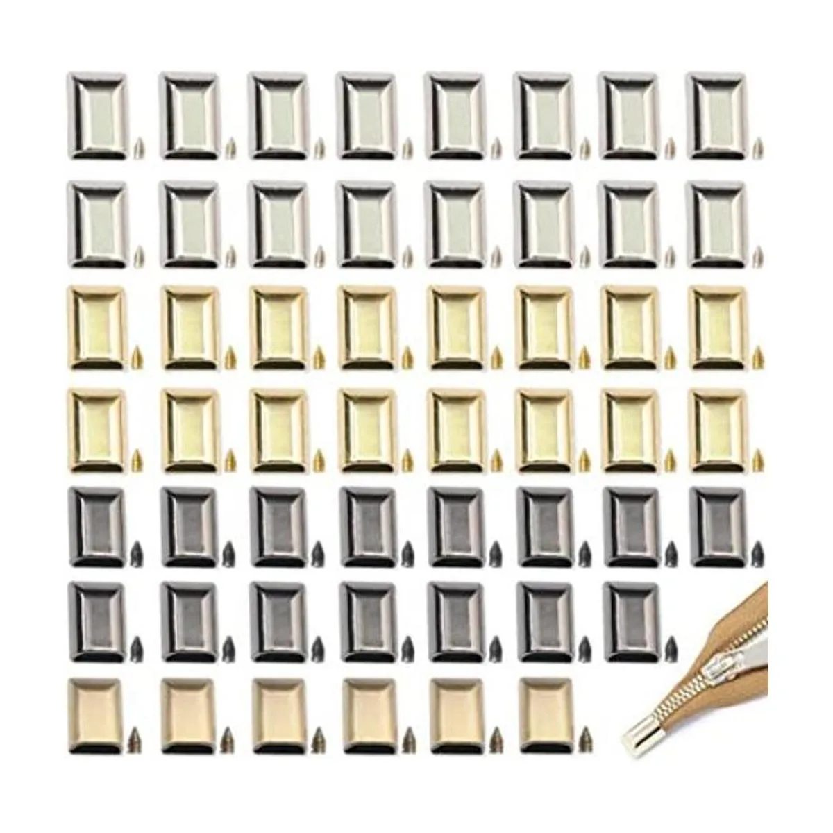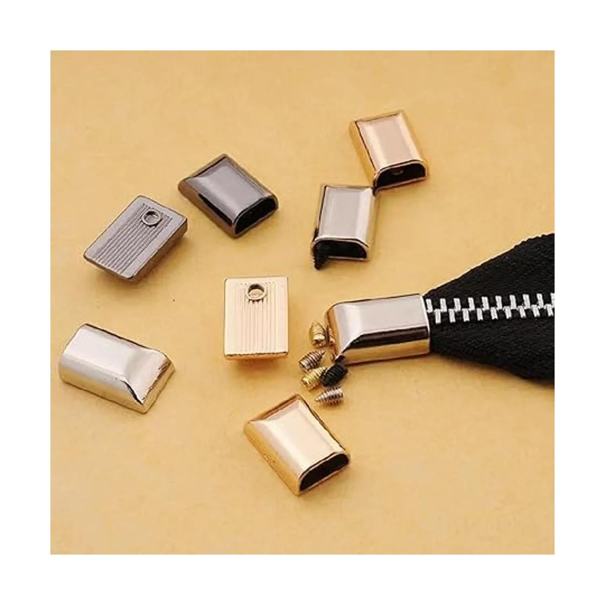 Hay 4 colores para elegir 80 juegos de extremos de cordón de cremallera con tornillo de hierro en total; 20 juegos/colores oro, plata, oro de tungsteno, oro mate.