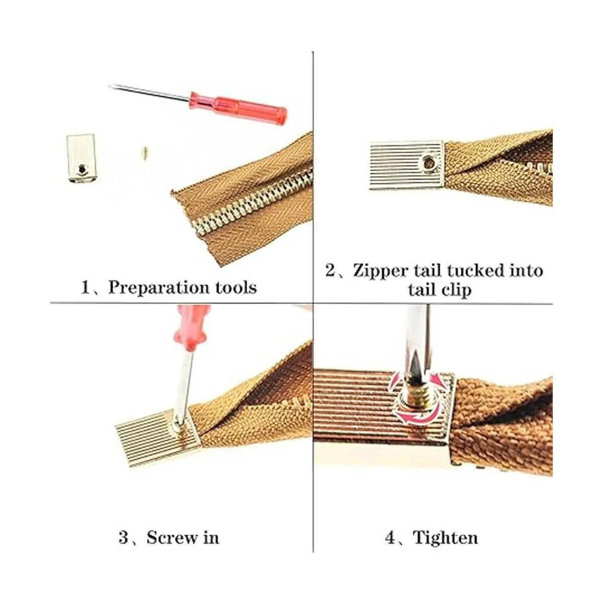 Amplias aplicaciones Adecuado para reparar abrigos, chaquetas, jeans, faldas y pantalones, equipaje, mochilas, carteras, tiendas de campaña al aire libre, lona marina, collares, cinturones, etc. extremos de cordón con cremallera.