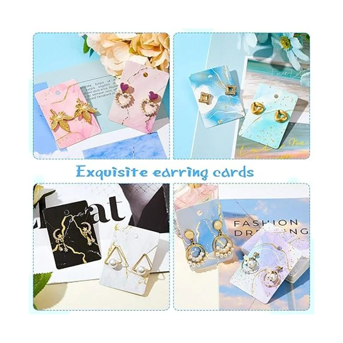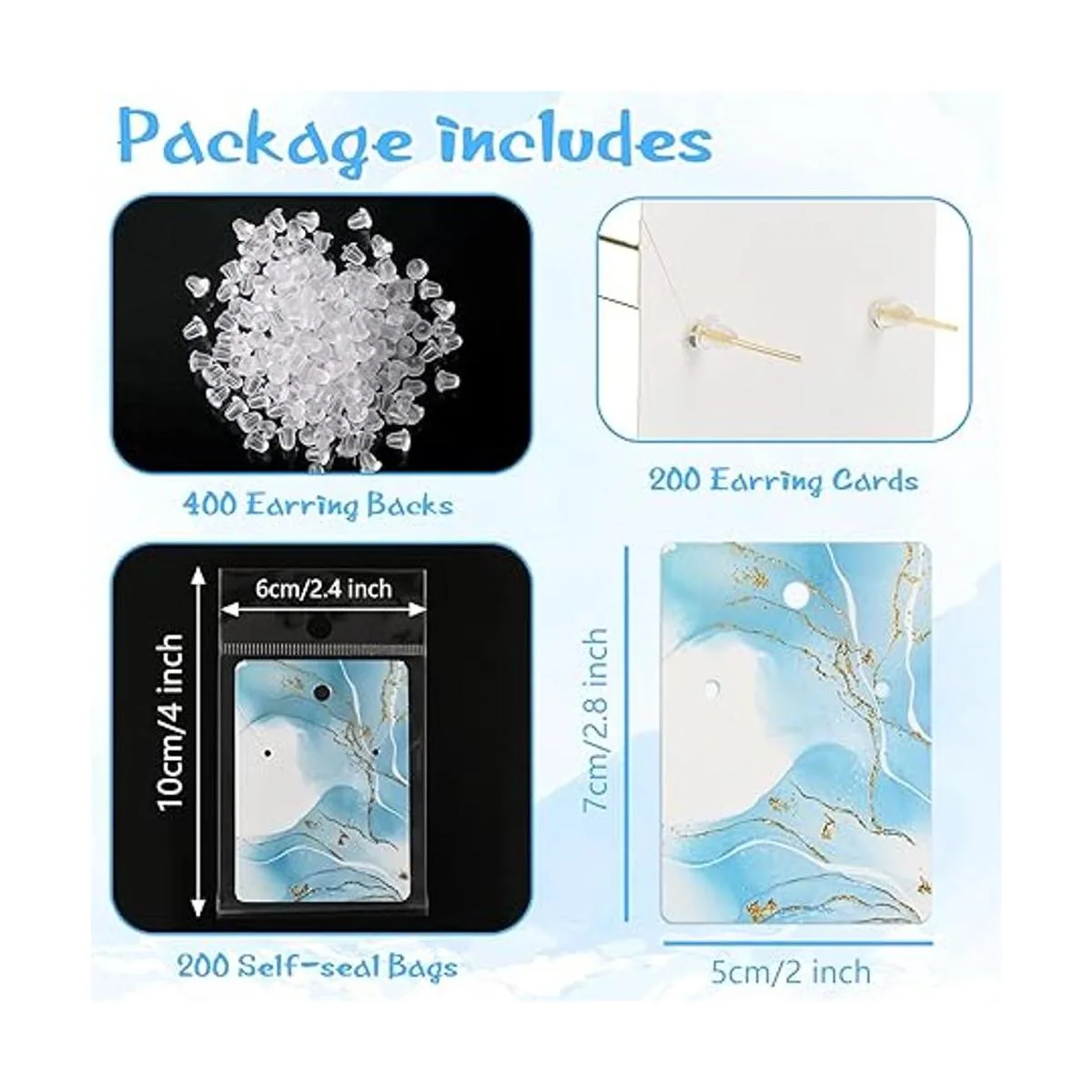 Juego de 800 tarjetas de aretes con diseño de mármol con líneas doradas, 200 tarjetas de aretes de 8 colores, 200 bolsas autosellables y 400 respaldos de aretes para joyas de bricolaje, estilo brillante