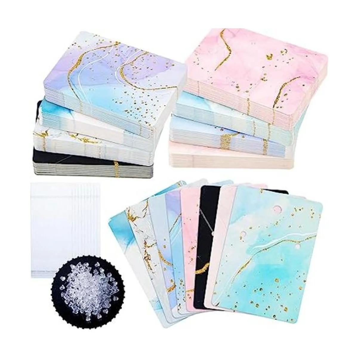 Información del paquete: hay 200 tarjetas de aretes de diseño de mármol en 8 colores, 200 bolsas autosellantes y 400 piezas de respaldo para aretes en nuestro paquete, 800 piezas en total, que serán tus bonitas joyas de exhibición y almacenamiento, y cantidad suficiente satisfará tus diversas demandas
