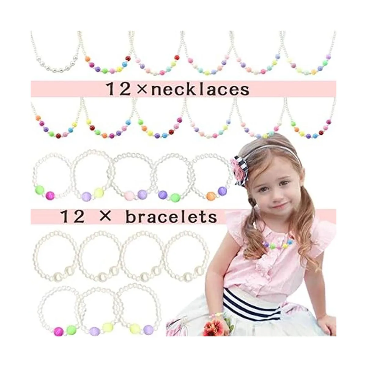 Adorable juego de vestir para cualquier niña que intente ser una pequeña dama. Pinzas para el pelo estilo sombrero, collar de perlas y abanicos de mano de encaje inspirarán horas de juego imaginativo para cualquier niña.