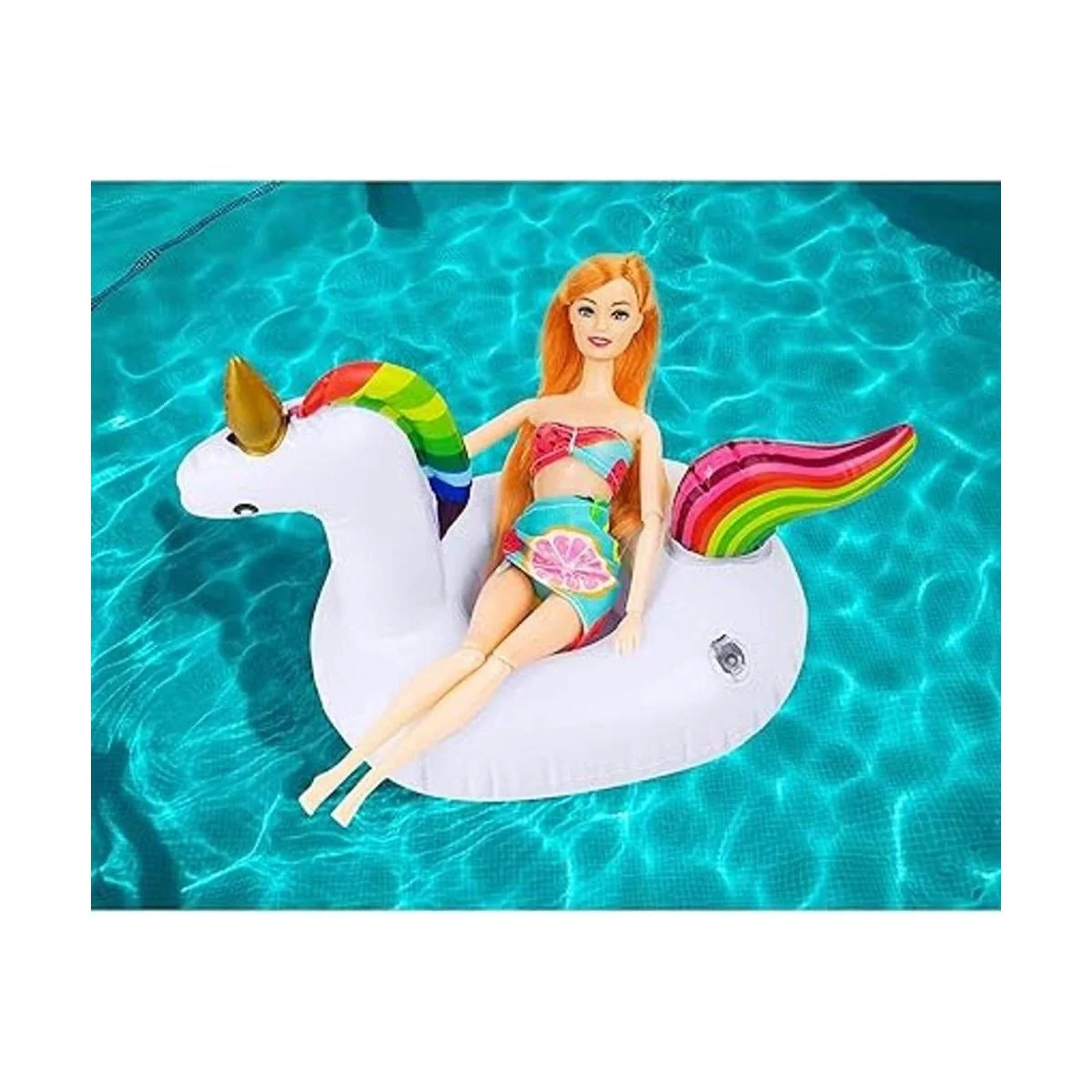 El paquete incluye: 9 bonitos anillos de natación para muñecas de niña de 11.5 pulgadas, unicornio de diseño especial, nubes, donas, pato, sandía, piña, árbol, cangrejo y peces.
