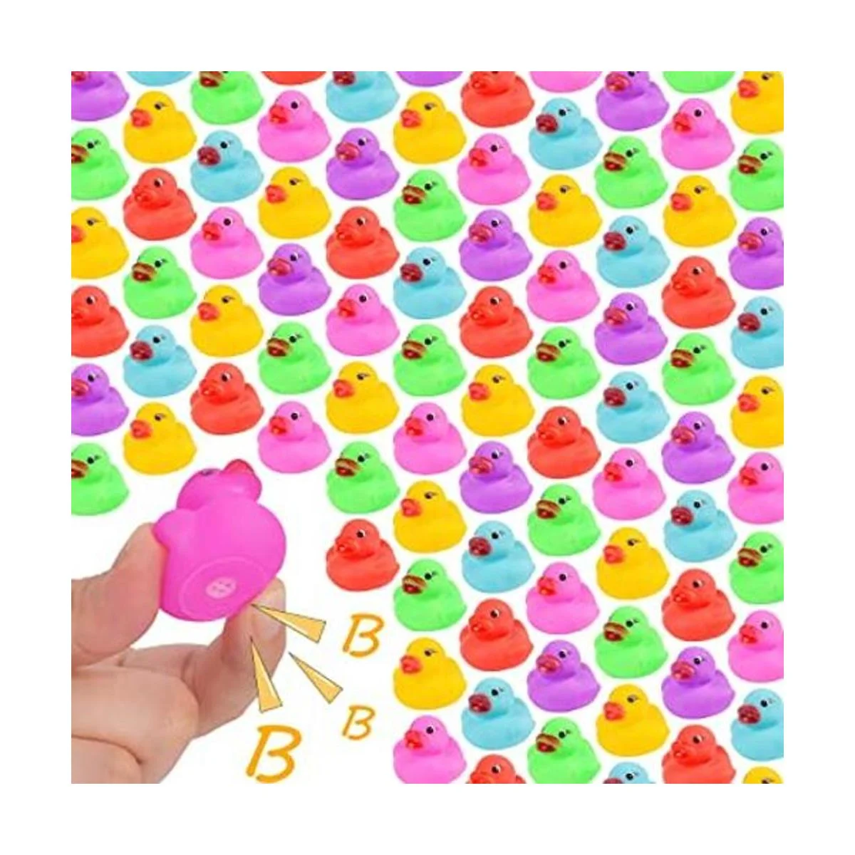 Juego de 90 mini patos de baño, mini juguete de baño de goma colorido para niños, flotadores y chirriantes, juego de juguetes de piscina para regalos de fiesta de niños, suministros de fiesta de cumpleaños, recompensas de premios