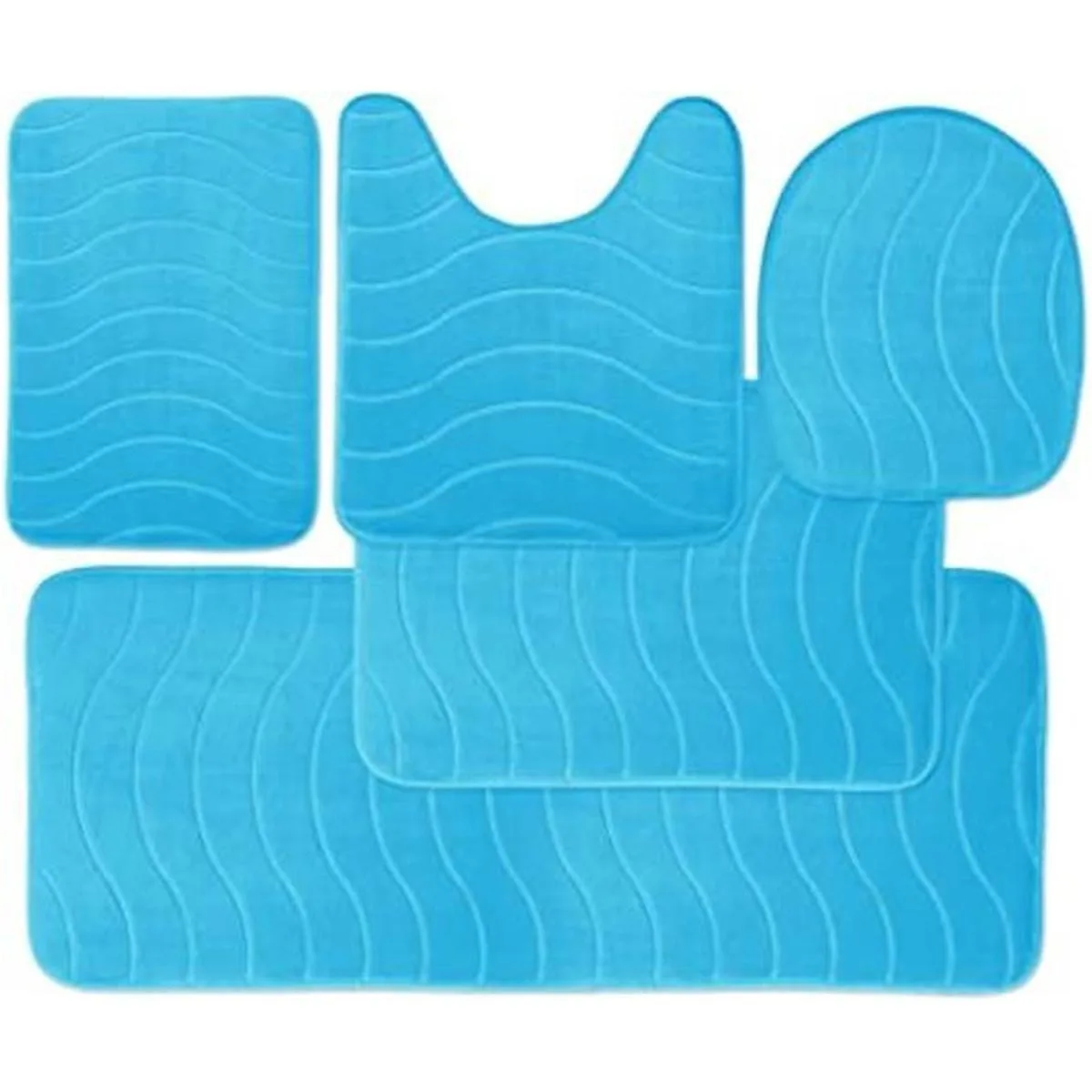 El juego de 5 incluye: 1 alfombrilla de baño de 43 x 20 pulgadas, 1 alfombra de 19 x 30.5 pulgadas, 1 alfombra de 16 x 23 pulgadas, 1 alfombra de contorno de 20 x 20.5 pulgadas, 1 cubierta de tapa 16 x 14 pulgadas