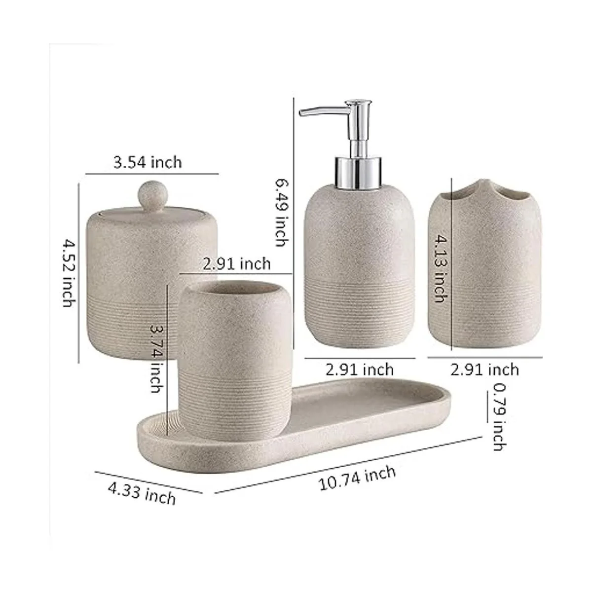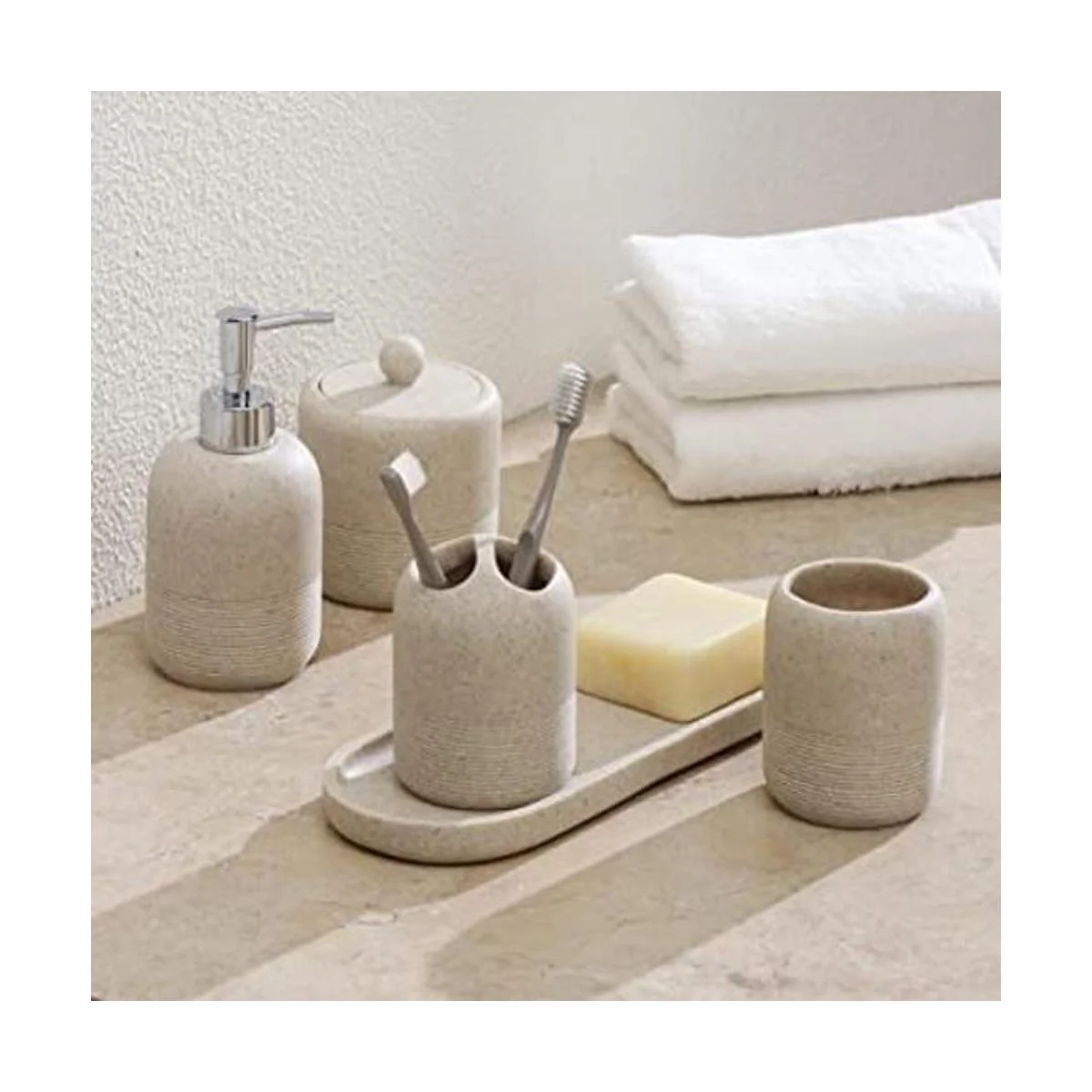 Juego de accesorios de baño de 5 piezas de poliresina de alta calidad, dispensador de loción, soporte para cepillos de dientes, tarro de algodón, bandejavaso