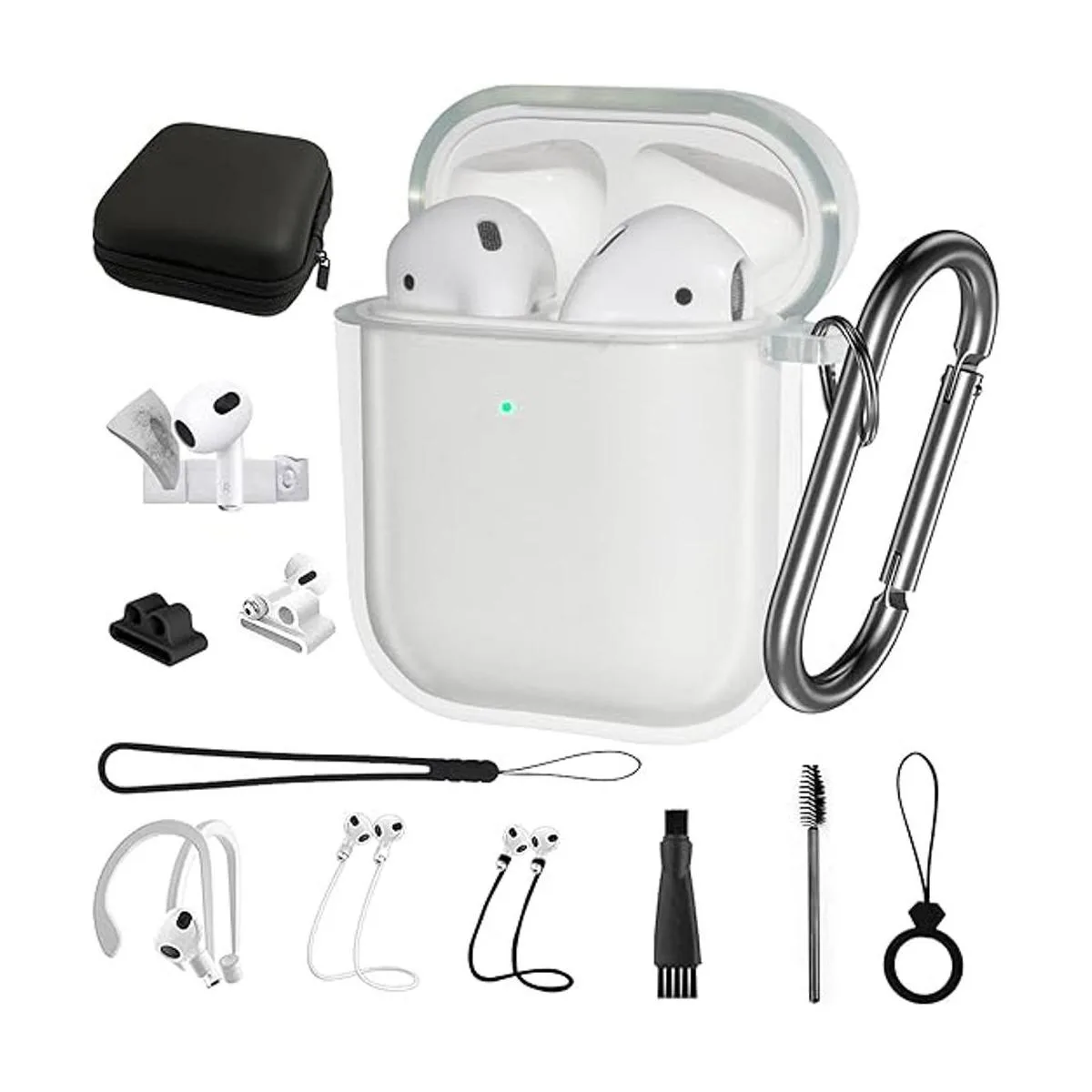 Juego de accesorios de funda transparente para AirPods 13 en 1, funda protectora de silicona suave TPU para Apple AirPods 12 generación con llavero compatible con Apple AirPods Case Transparente