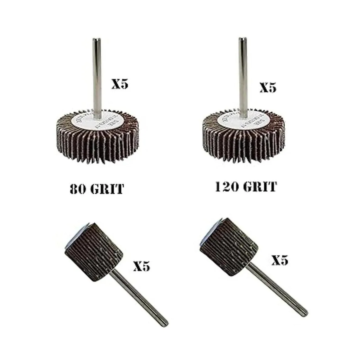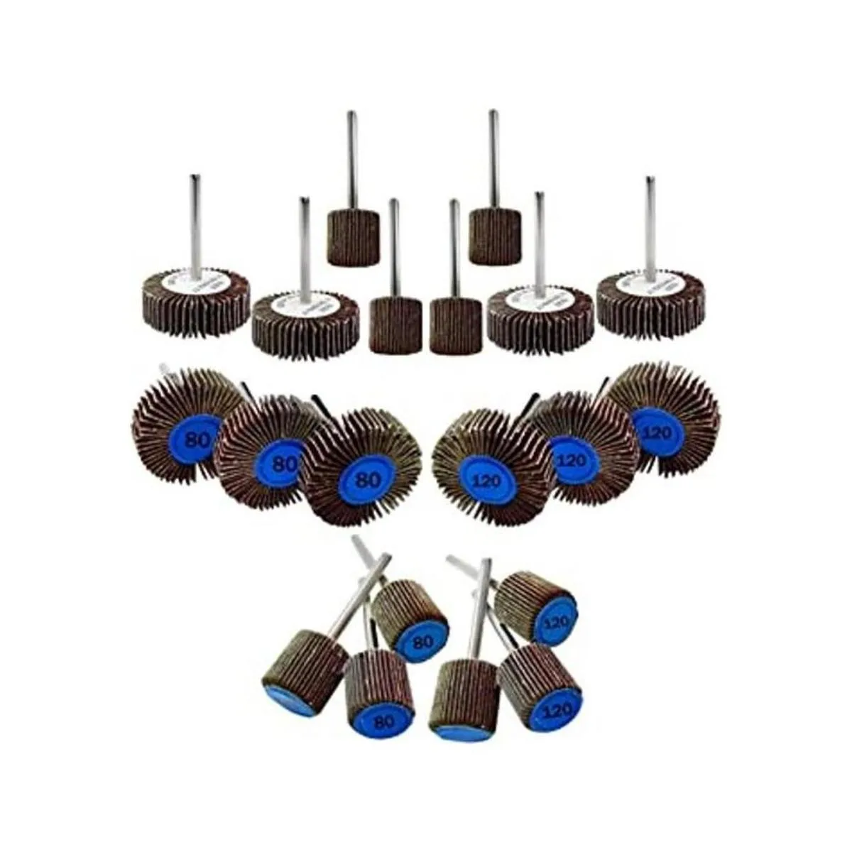 Kit versátil que contiene 20 accesorios de lijado de solapa, viene en 2 formas, rueda y forma cilíndrica.