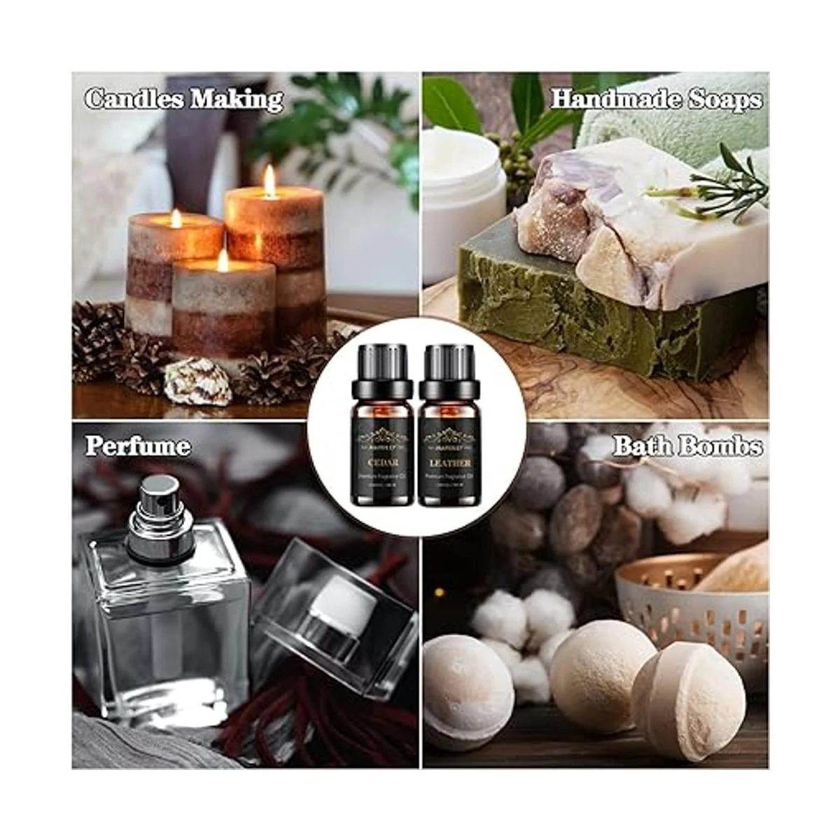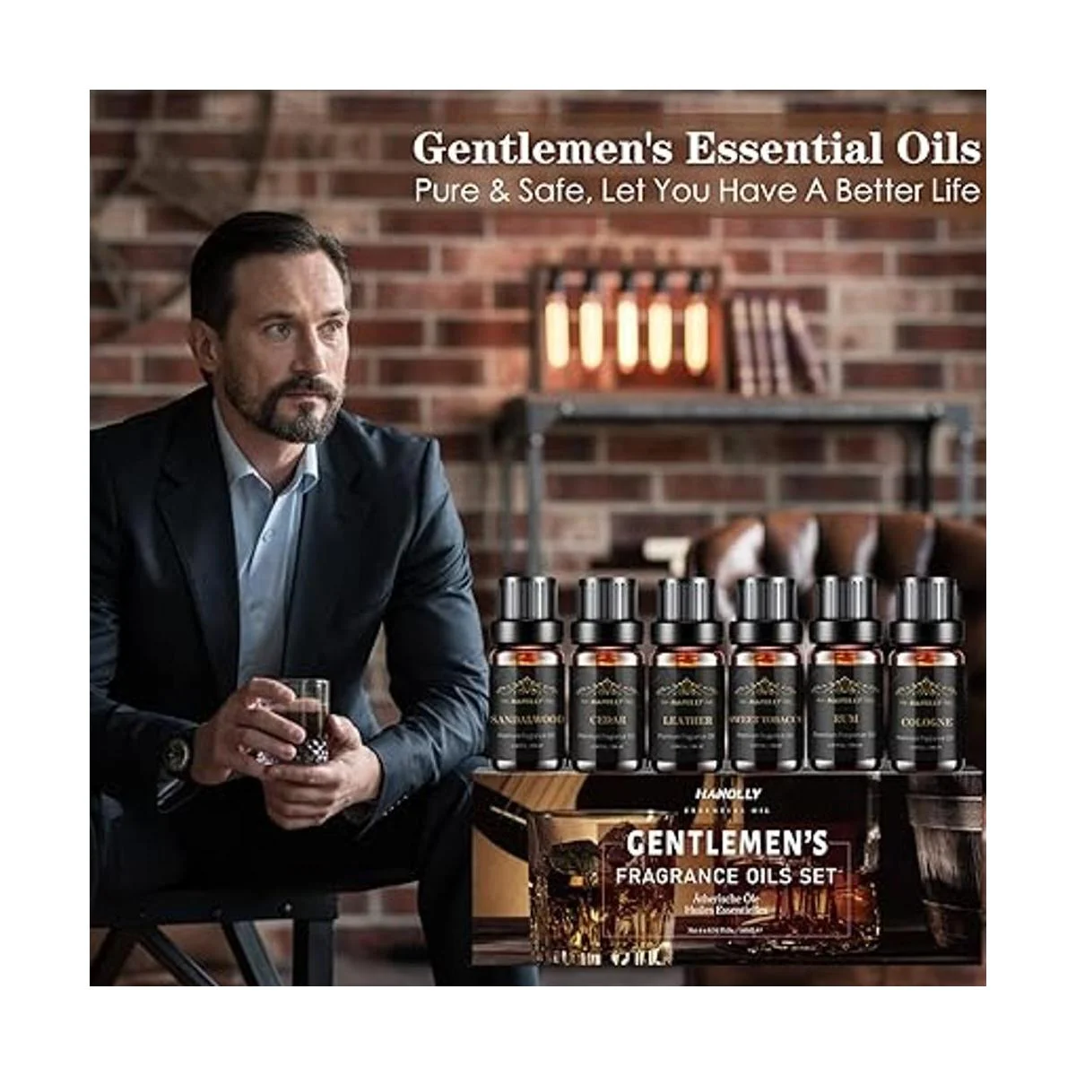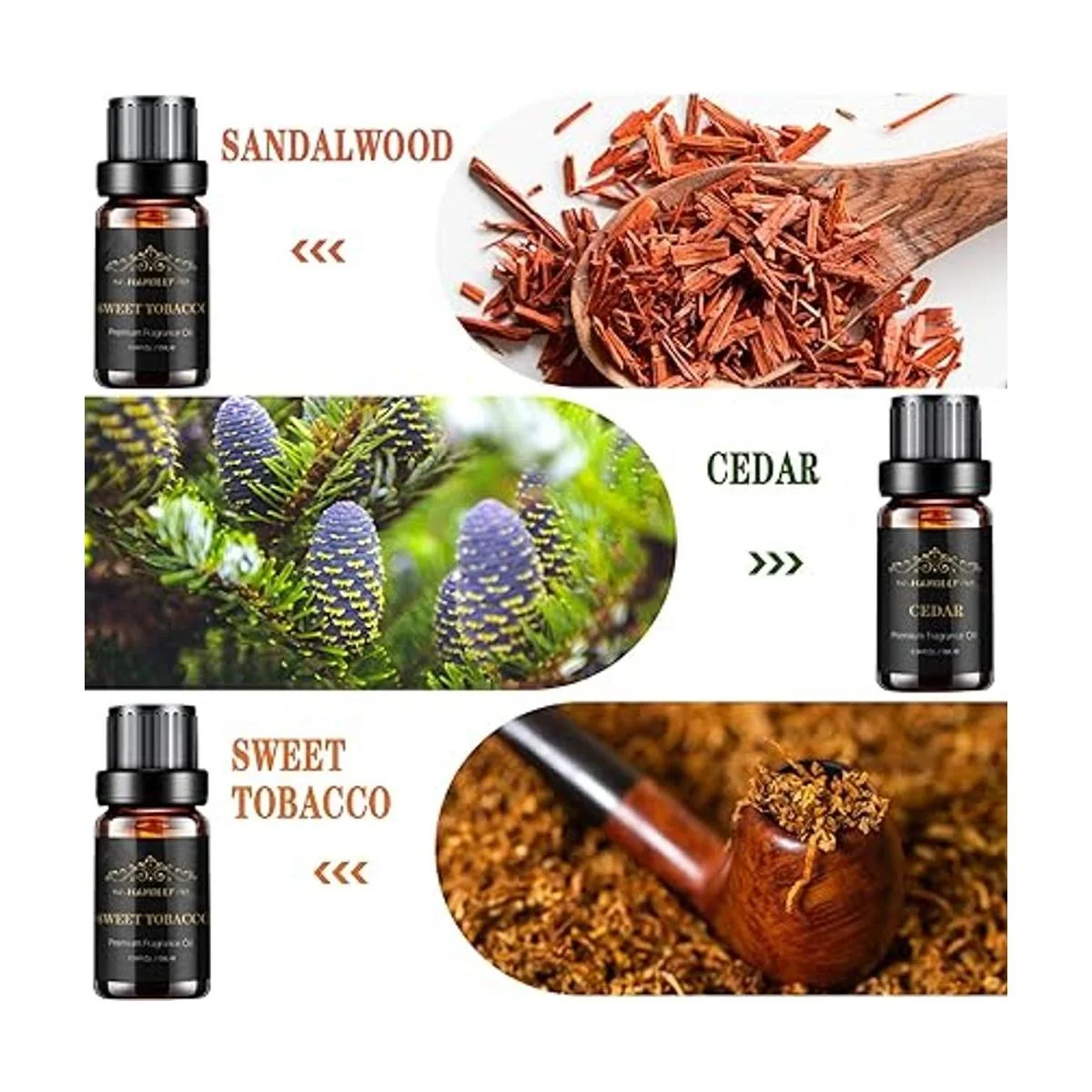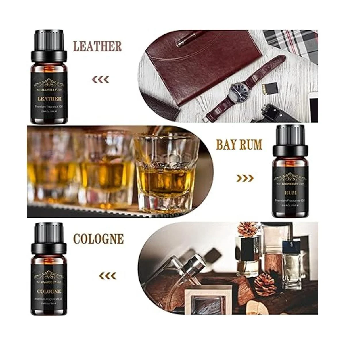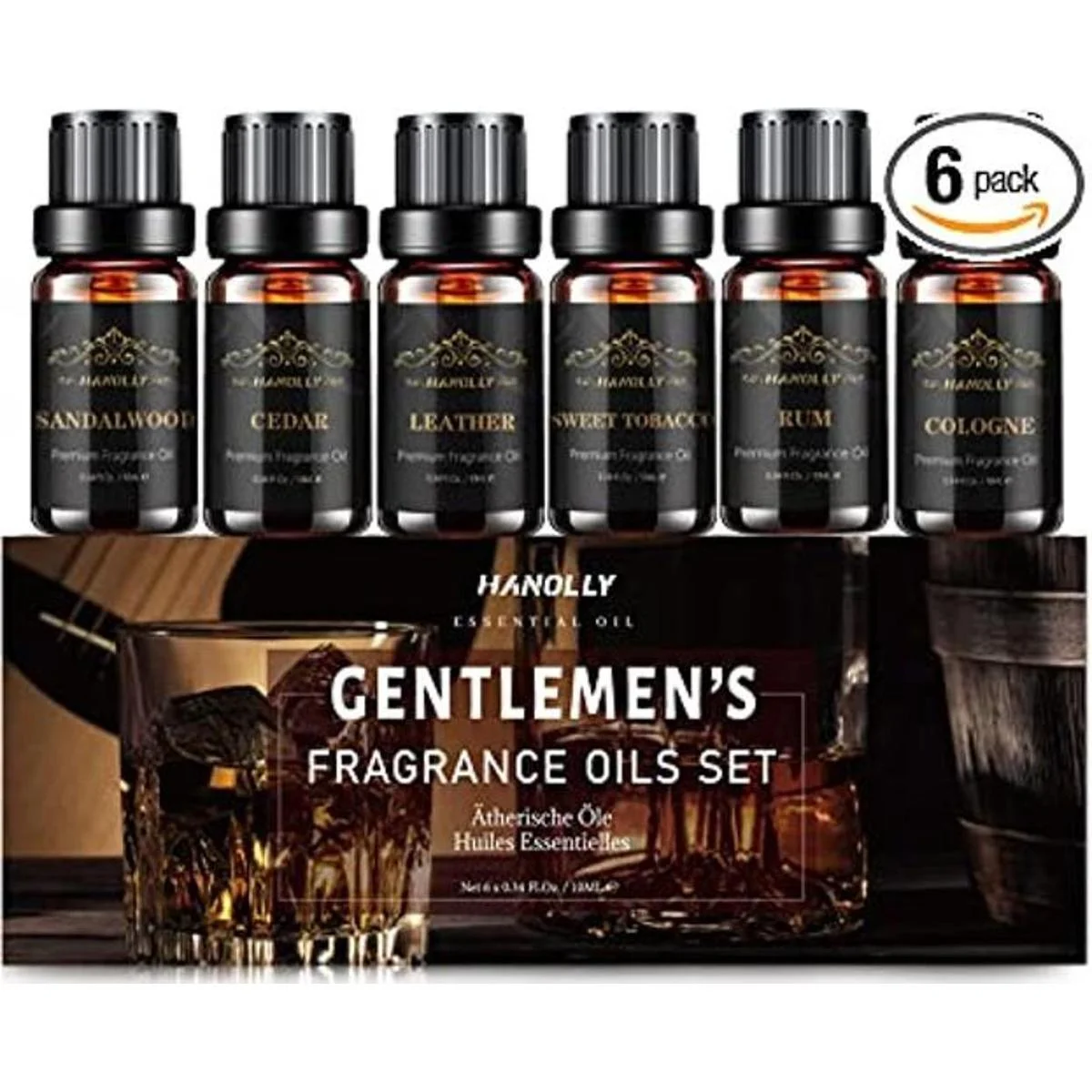 Juego de aceites esenciales, aromas para hombres, kit de aceites esenciales de aromaterapia para difusor 6 x 0.3 fl oz, sándalo, cedro, cuero, tabaco dulce, ron, aceites de aromaterapia de colonia para hombres