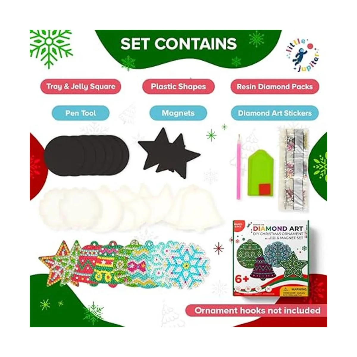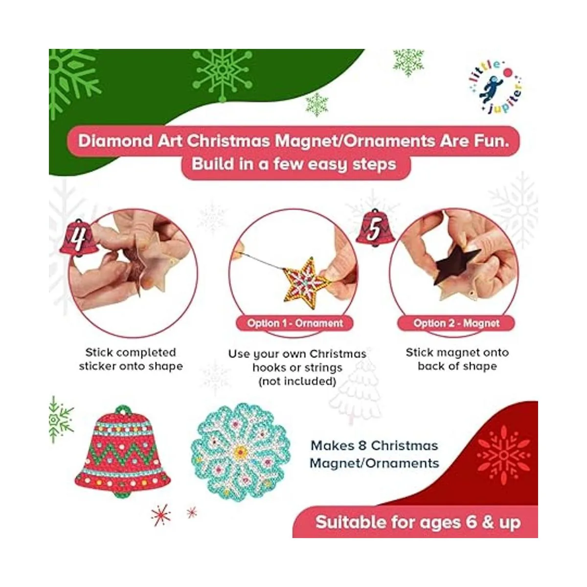 Aprende y juega manualidades navideñas para niños: mira a tu hijo desarrollar confianza con el kit de pintura de gemas Little Jupiter. Los niños pueden practicar habilidades motoras finas y resolver problemas mientras se divierten. Cada imán tarda 15 minutos o más por pieza