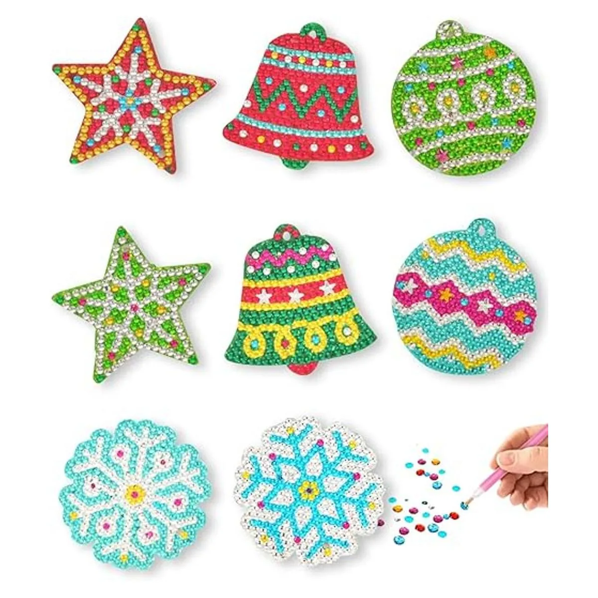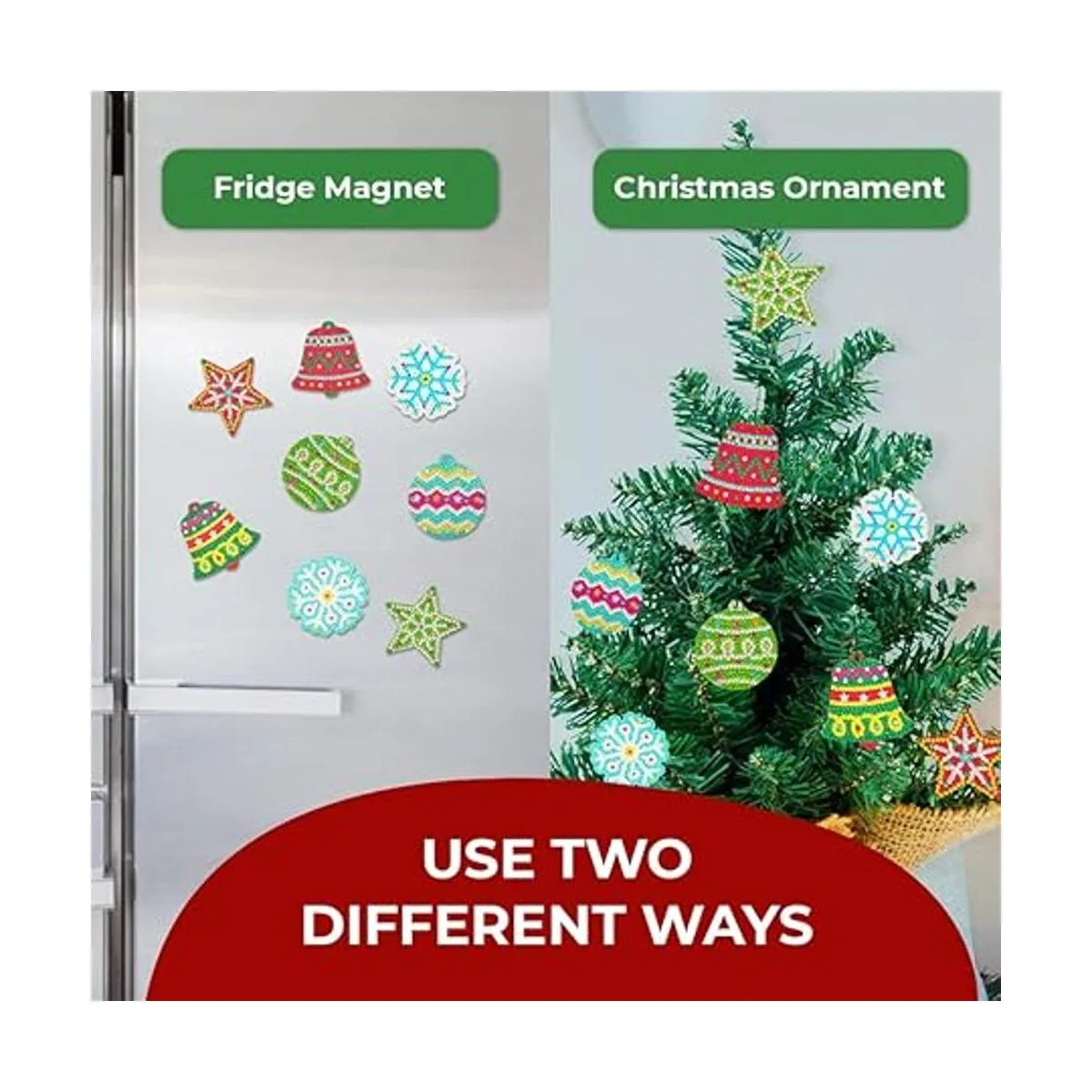 Juego de adornos de Navidad con imán y diamante para niños, hace 8 piezas, manualidades de Navidad para niños, kits de pintura de diamantes para niños, kits de pintura de diamantes para niños, kits de pintura de diamantes para niños, kits de adornos de Navidad Kit de adornos