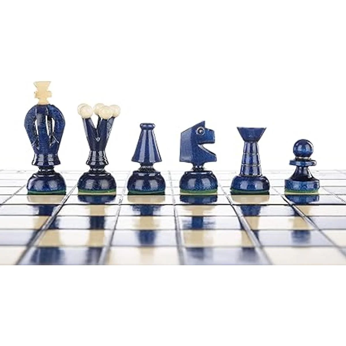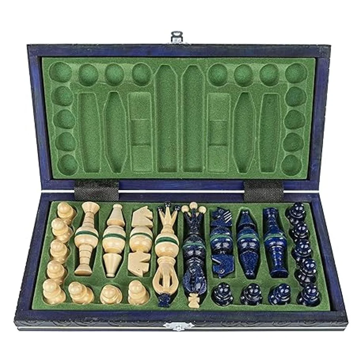 Juego de ajedrez plegable de madera París BLUEBERRY tablero internacional de madera piezas talladas vintage 14