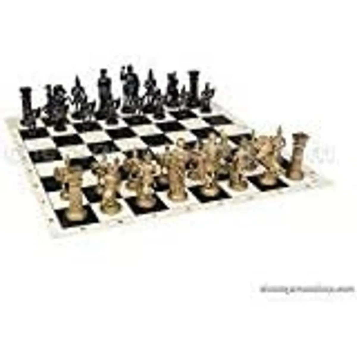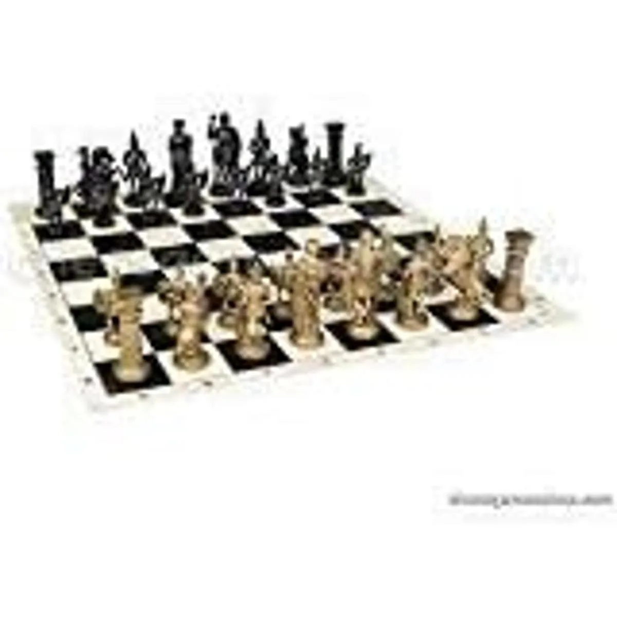 Piezas de ajedrez de plástico negro y dorado de la legión romana de 3 3/4 pulgadas