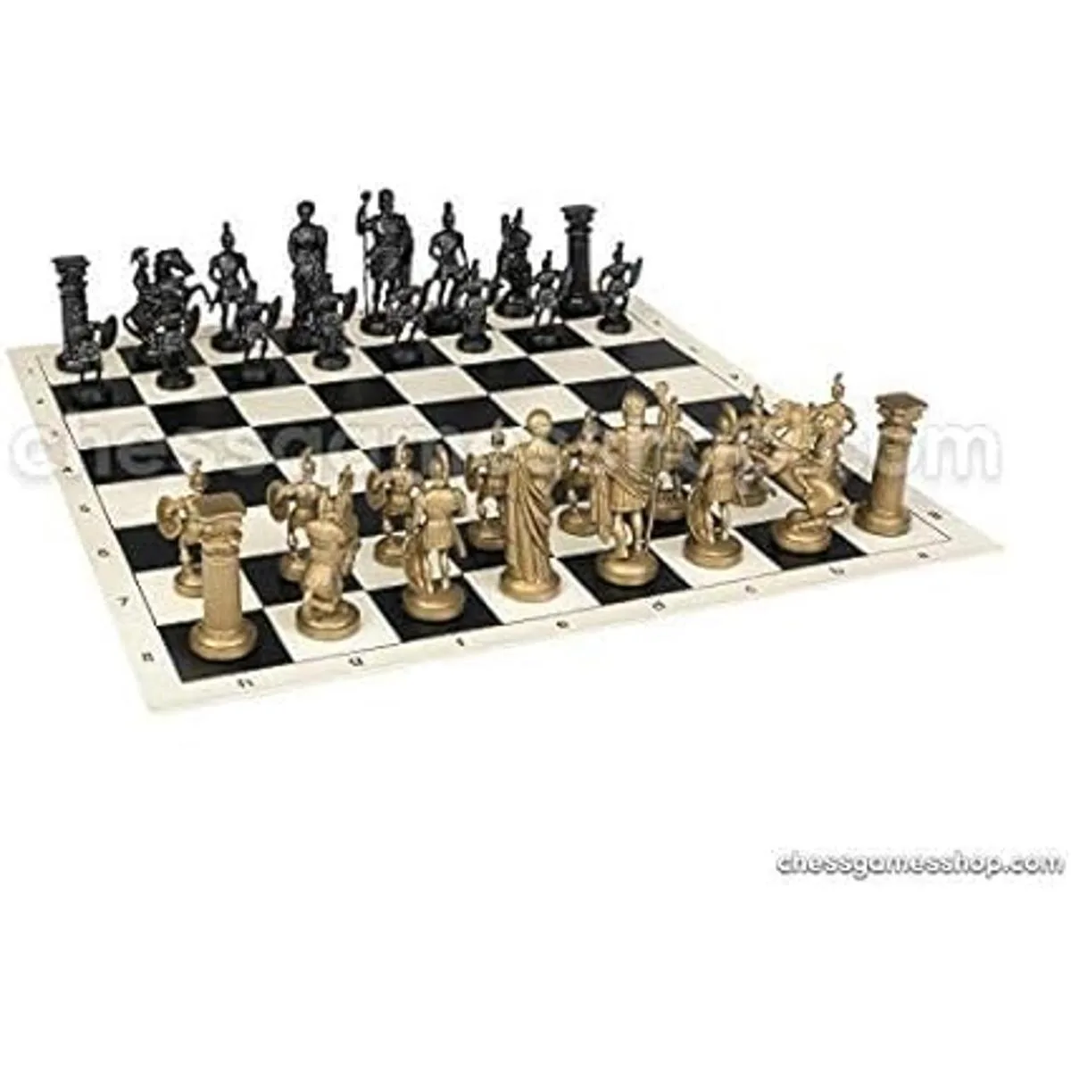 Juego de Ajedrez Romano Tabla de Ajedrez de Vinilo, Negro y Blanco Tamaño 17,3 pulgadas Piezas de Ajedrez Romana 3,75 pulgadas Negro