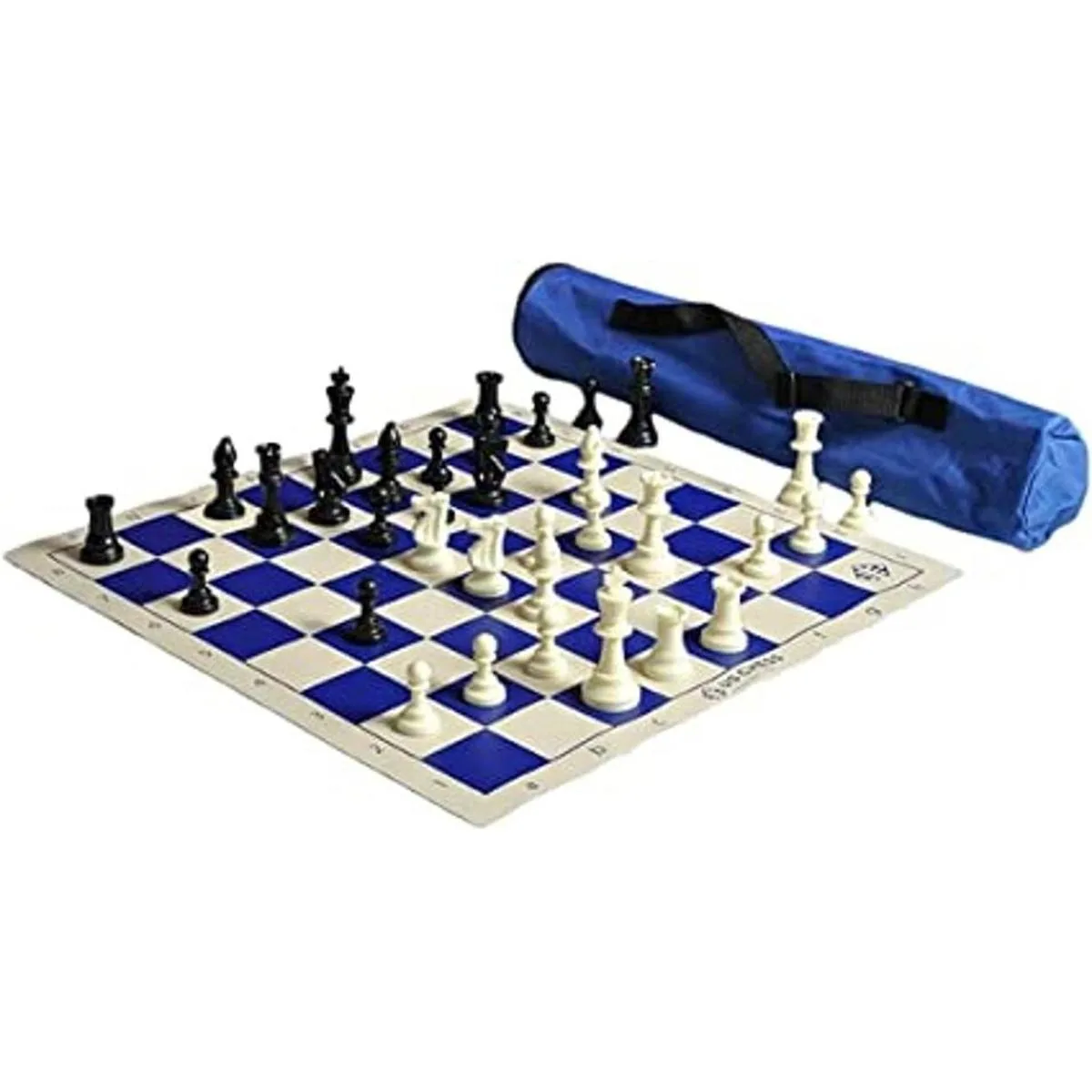 Todo lo que necesitas para jugar al ajedrez Viene con un juego completo de piezas de ajedrez de plástico reguladoras de peso único, bolsa de ajedrez carcaj y una tabla de ajedrez de vinilo de alta calidad